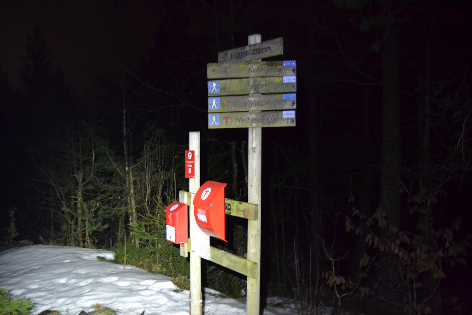 Kveldstur inn fra Voldsveien etter en tur på Herkules og Saga matsenter. Gikk greit uten brodder, men stort sett isete i sporet hele veien nå.