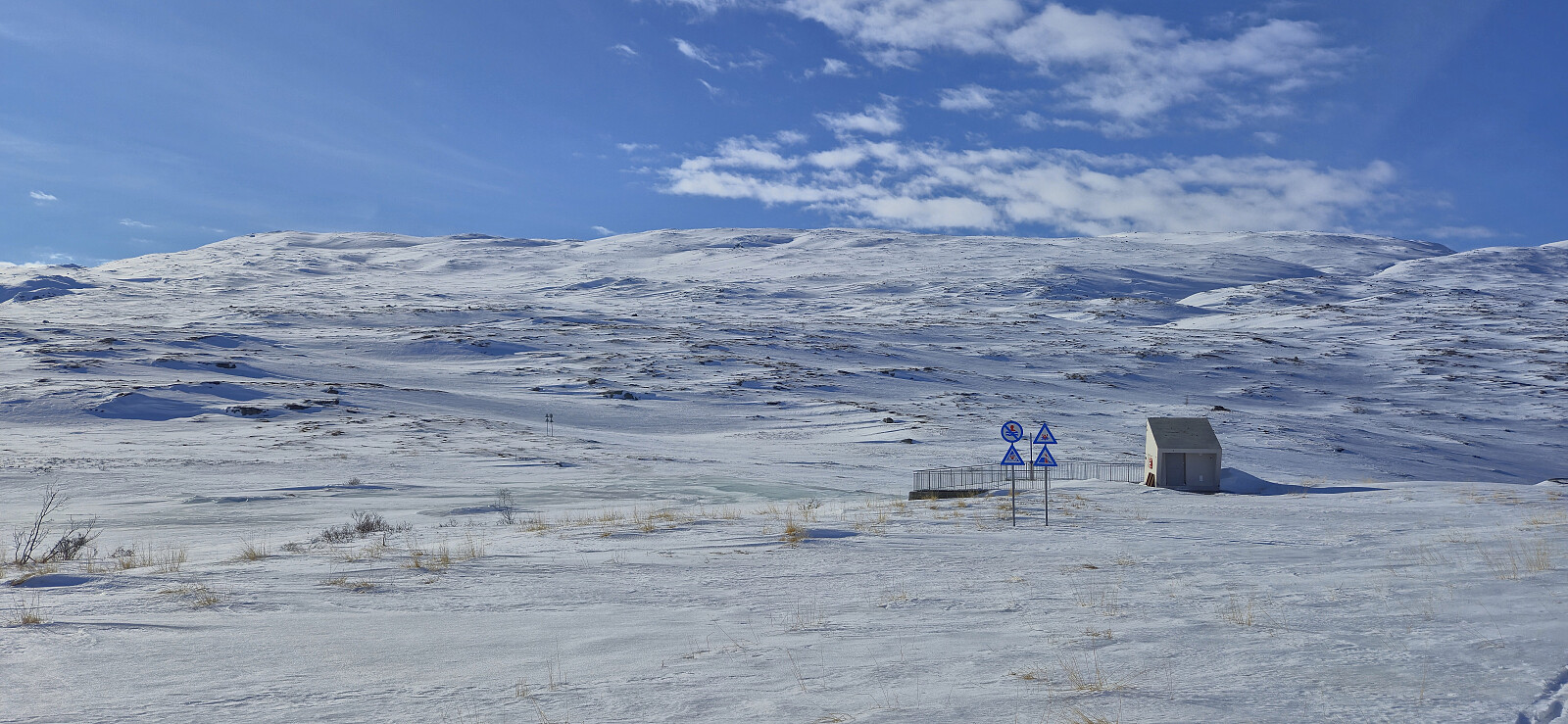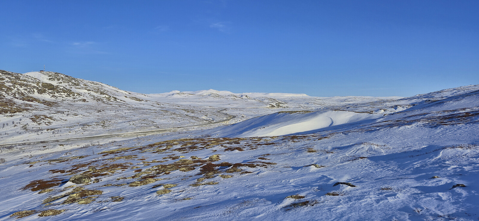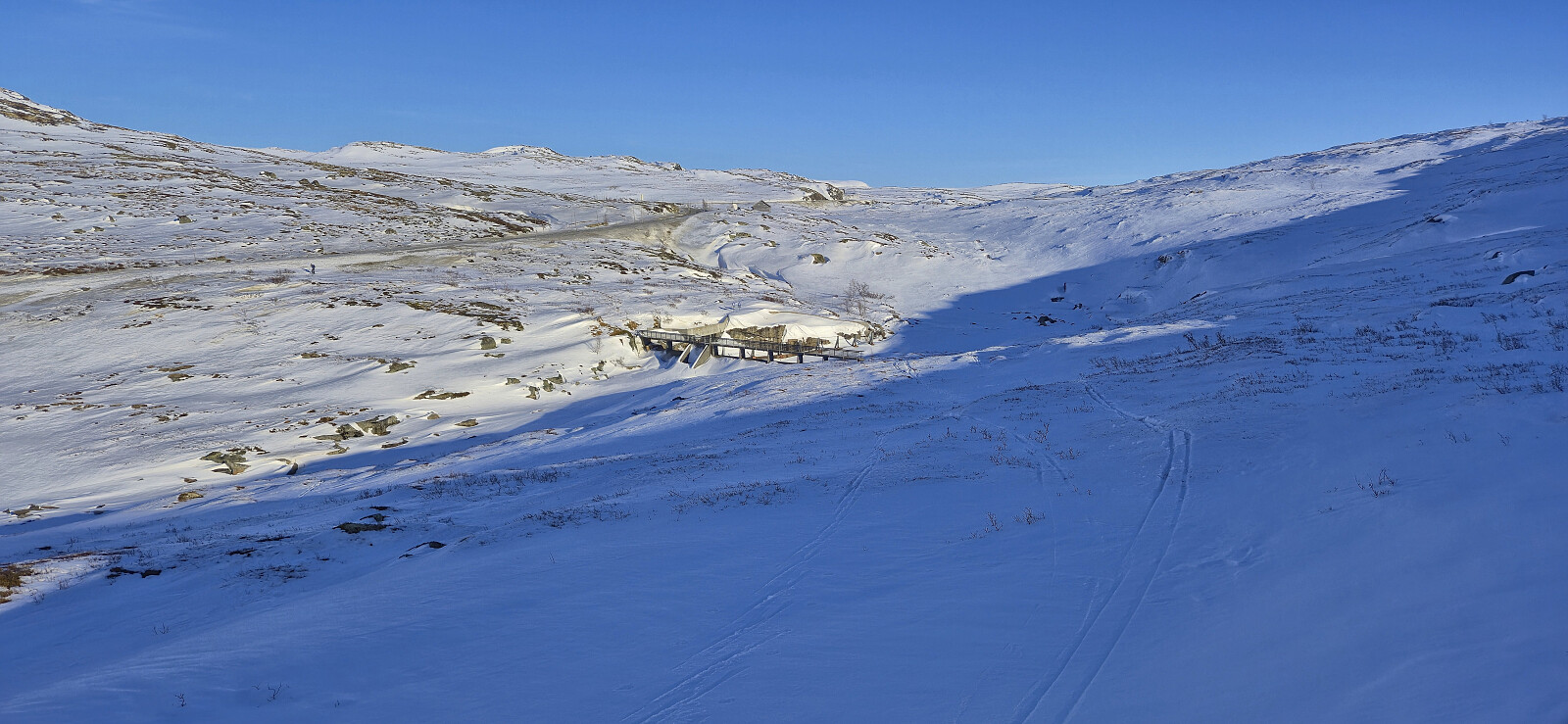 The ascent to Vetle Allgarden was a mixed bag. It started with a minor struggle in deep and heavy snow which later turned into areas with almost no snow at all. After another break at the summit, we headed more or less in a direct line east, aiming for the dam across Bjoreio, and finally concluded the hike by walking the short distance along the main road back to the car. We had also planned to ascent Grytehorga but given the sub optimal skiing conditions, we left this for another day.