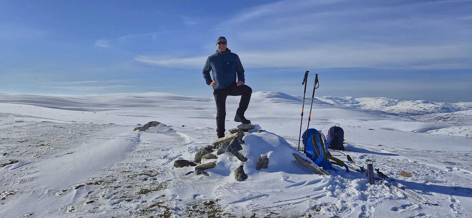 Next, we headed more or less directly southwest towards Fagernuten, rounded the summit on the eastern side and made the final ascent from the south. After a short break next the cairn, we descended northeast into the valley between Fagernuten and Store Allgarden before turning north and passing by Drøllstøl on our way to Vetle Allgarden.