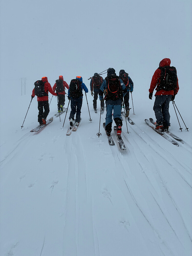 Videregående observatørkurs 4b med NVE i Myrkdalen. Gikk i elendig sikt mot Skjelingahaugen.