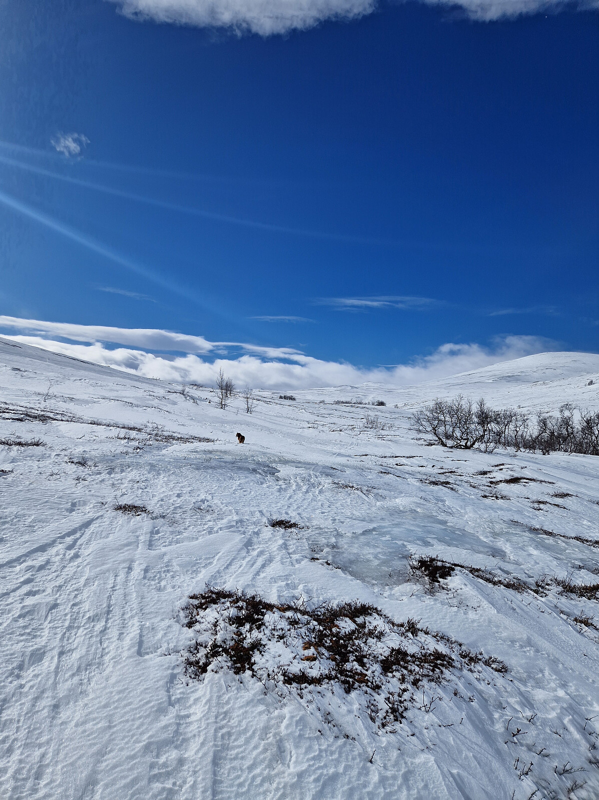 Det ble en tur innover Asbjørndalen denne lørdagen. Været var flott, med sol og skikkelig påskestemning gjennom dagen. Dessverre har det vært lite snø på Bjorli denne sesongen, noe vi fikk merke godt på turen opp mot Skarvehøi. Flere steder var det så store områder uten snø at vi måtte ta av oss skiene for å krysse barmark før vi igjen fant sammenhengende snø.