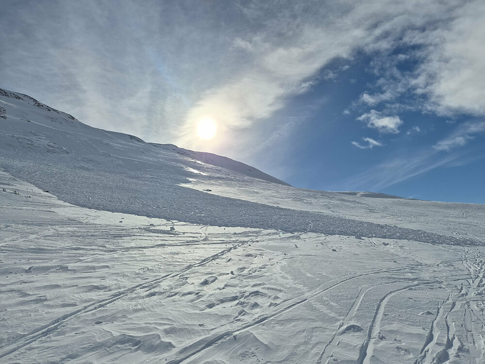 Periodevis fin snø ned bollen. Vi måtte ta to turer. Var gått et ras i venstre sida rett etter reinsgjerdet. Hadde gått overraskende langt ned, helt til hovedsporet. Med Hegge.