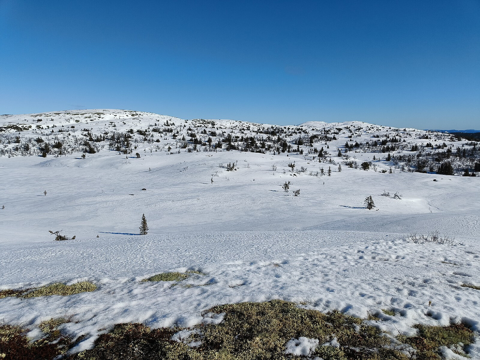 Nydelige forhold i dag, med skareføre. Bare å gå akkurat der jeg ville i fjellet. Litt vind.