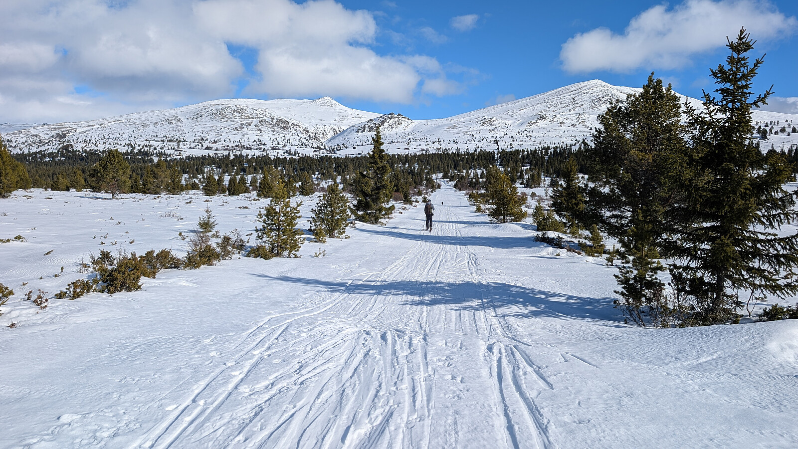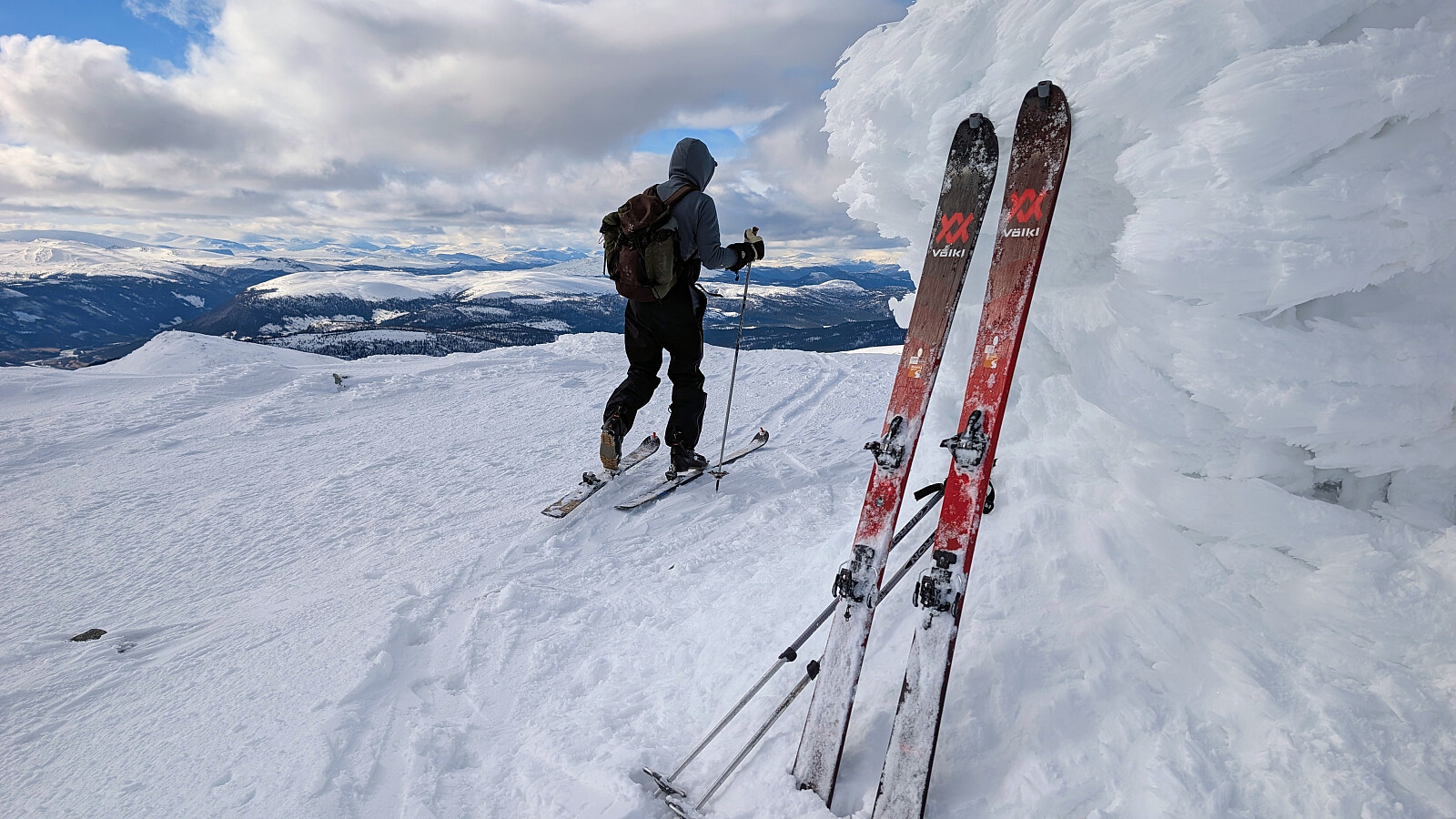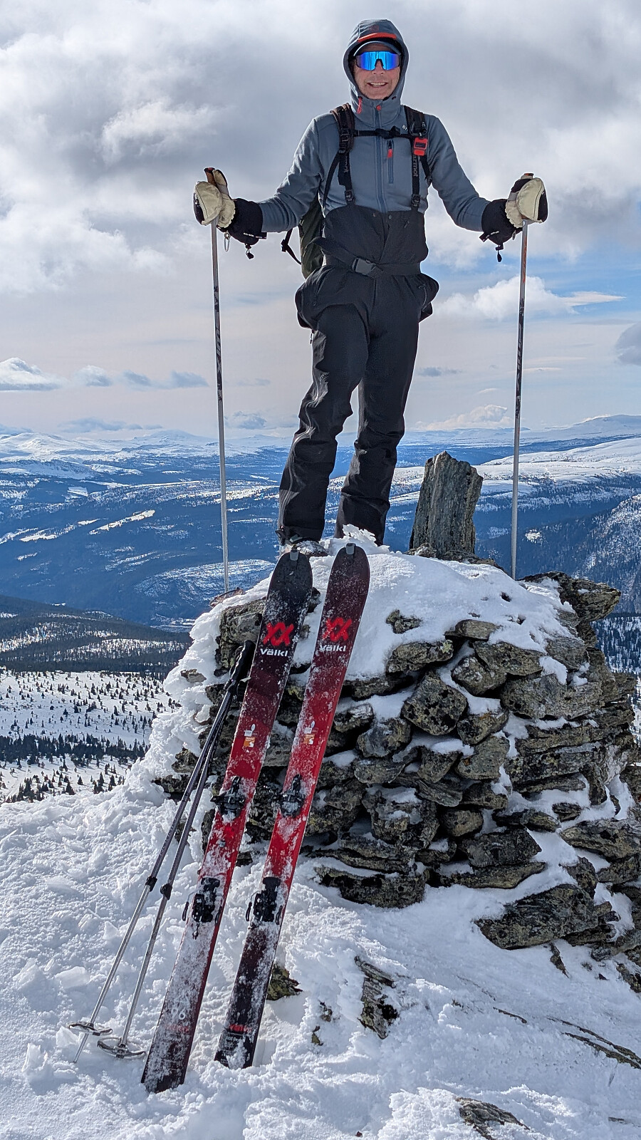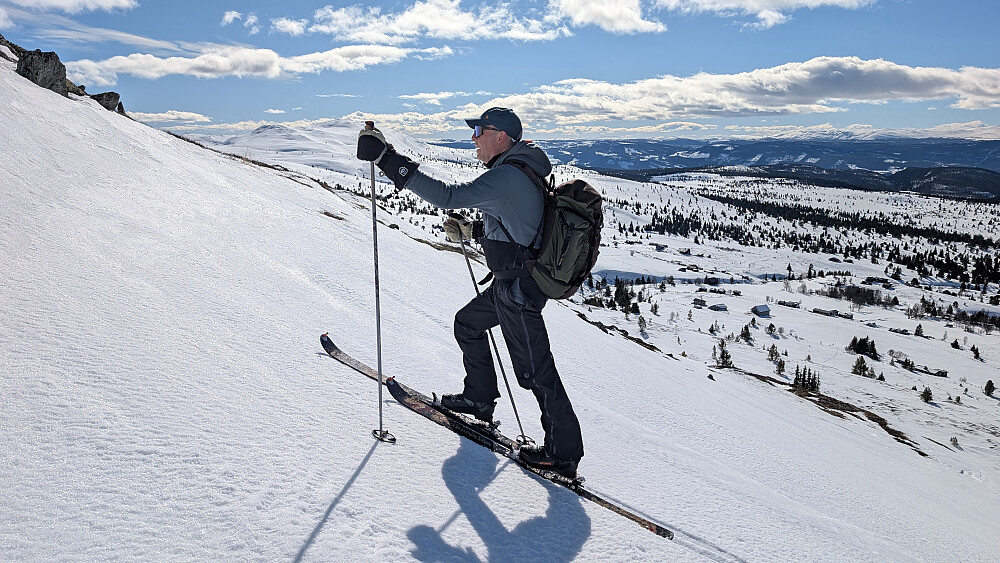 Det ble en flott da i fjellet idag. Turmålet ble valgt av NJK500 (Nils-Jørgen Kristiansen). Tidvis svært flott vær, men også noe skyet iblant. Litt kald vind på toppene, men ikke spesielt generende. Greie forhold oppover fra start, men litt skuffende snørforhold da fellene skulle tas av og vi skulle starte nedkjøringen fra Gravdalsfjellet. Noe gjennomslag og trøblete/skummel nedkjøring. Bra med snø, men ikke slik vi drømmer om. Et virkelig flott fjellområde dette med storslått utsikt i alle himmelretninger.