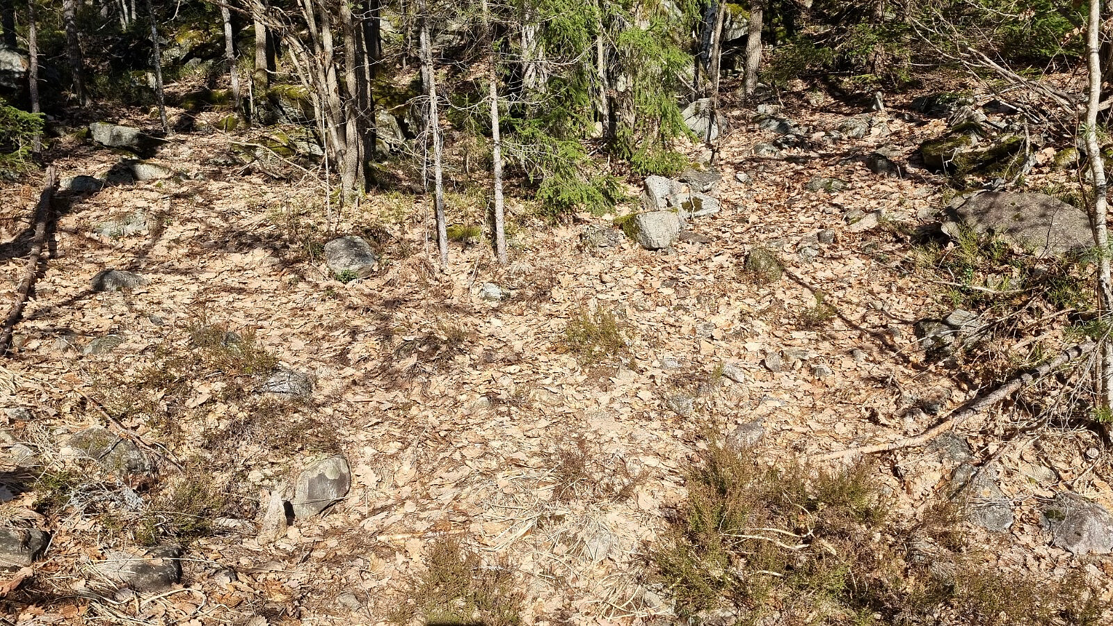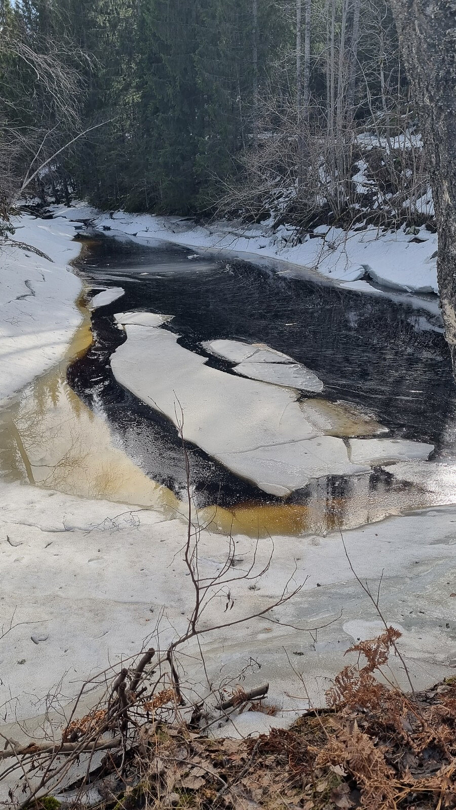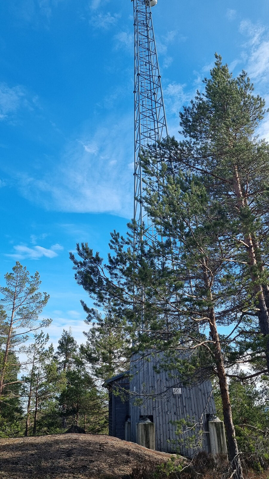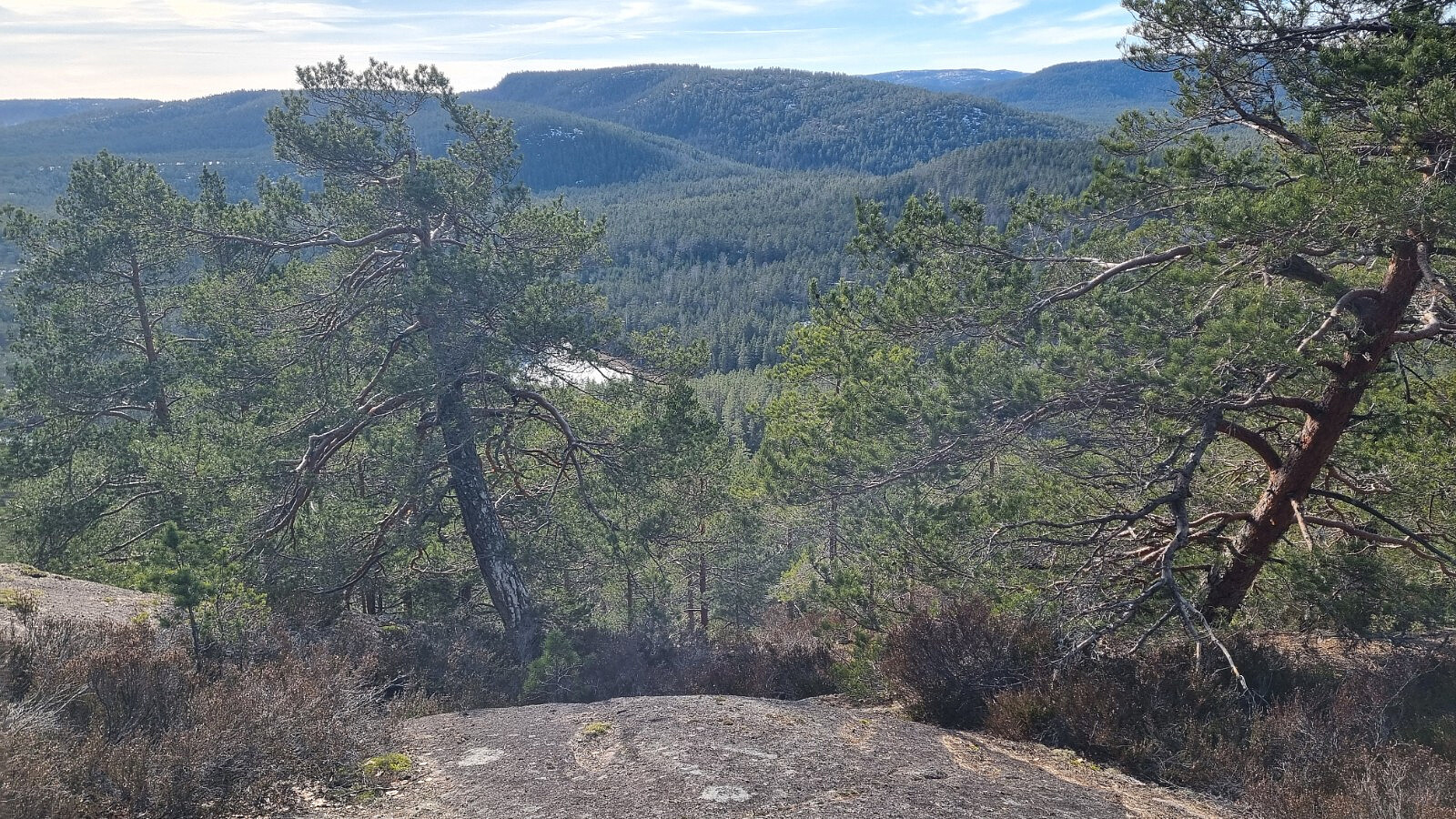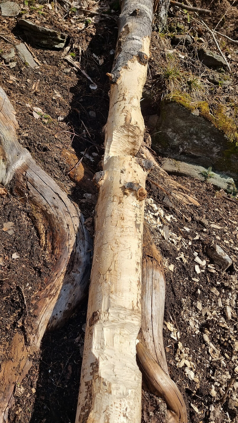 Topp nummer to i dag ble Kallarfjell. Heller ikke her valgte vi å ta med truger. Ville ikke kjøre inn veien og parkerte derfor ved hovedveien. Gikk veien til endes og fortsatte på traktorveien innover ved siden av toglinjen. Noen hadde ryddet litt vei, men er nok litt mer grodd her på sommeren. Tok litt for tidlig opp lien og ble brattere og mer ulent enn nødvendig, følg sporet ned. Her hadde beveren jobbet. Fint å gå oppover i blåbærris og furuskog. Ikke mange snøflekkene å spore opp lien her. På toppen er det en mast. Litt utsikt. Nøt solen på en fin steinhelle. Hørte toget kjøre forbi nedenfor. To fine turer med Sissel og Øyvind i dag. Endelig kom solen og våren. Utrolig godt å slippe tåke og gråvær, som vi har hatt i hele vinter.