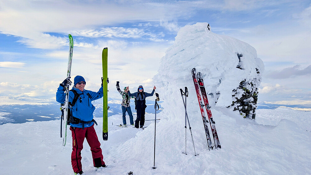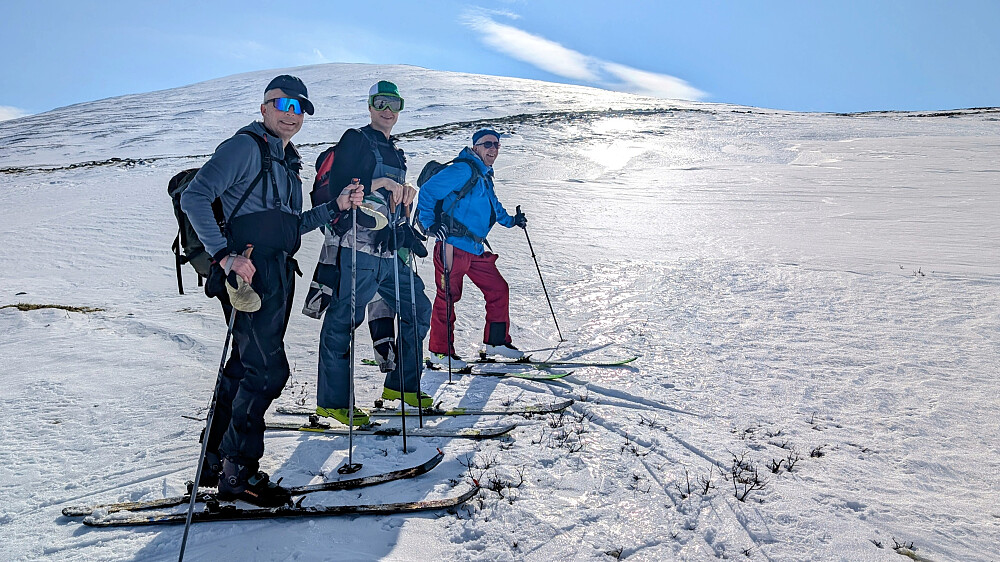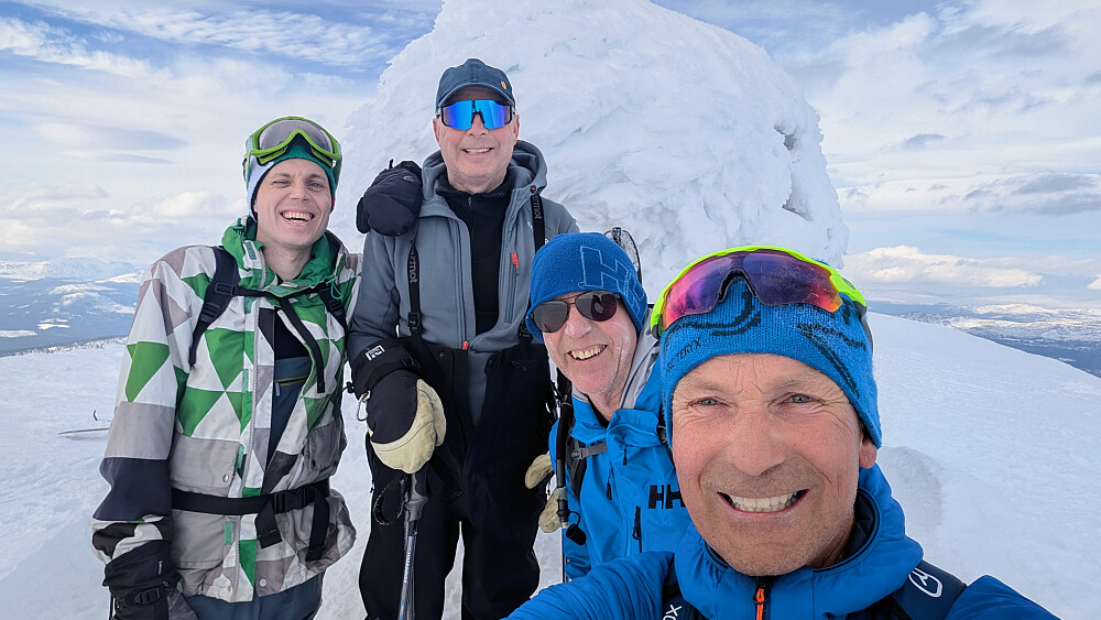 Greie værmeldinger på yr, men det ble bedre enn forventet. Når også da snøforholdene var gode ble det virkelig en super tur til en koloss av et fjell. Vi valgte et nytt utgangspunkt for turen. Et greit valg. Temperaturen var god og vinden var nesten ikke tilstede. Litt flaks må man ha. Tøff og bratt nedkjøring der man måtte holde fokus. Storslagen utsikt fra et slikt fjell med så høy primærfaktor. Takker NJK500 (Nils-Jørgen Kristiansen) Erlend og Tom Magne for en lang og flott tur i høyfjellet.