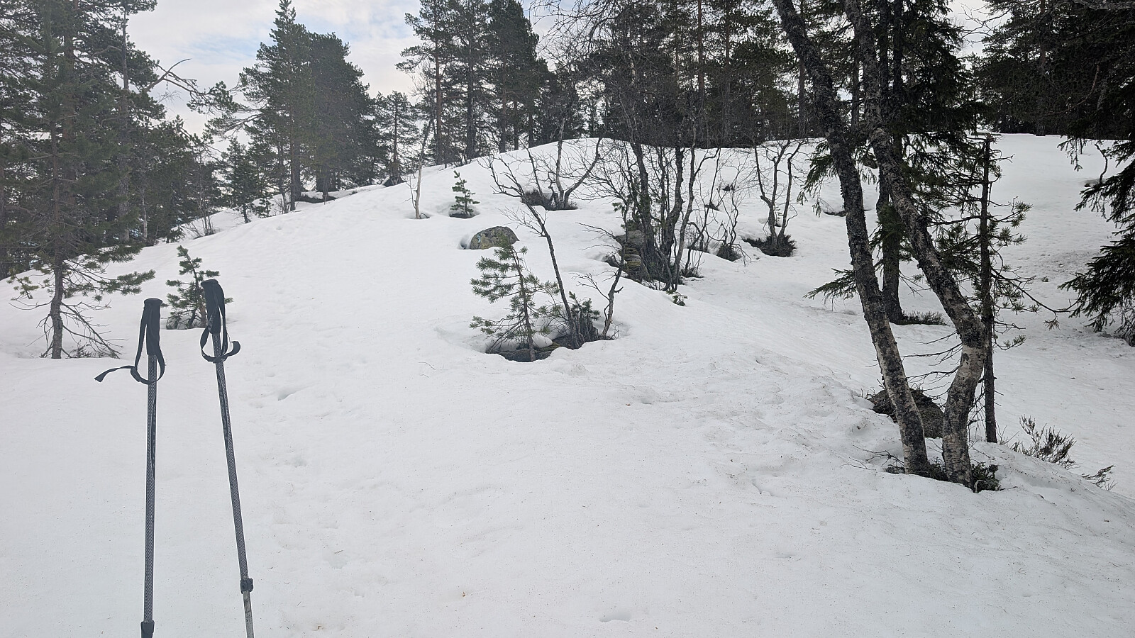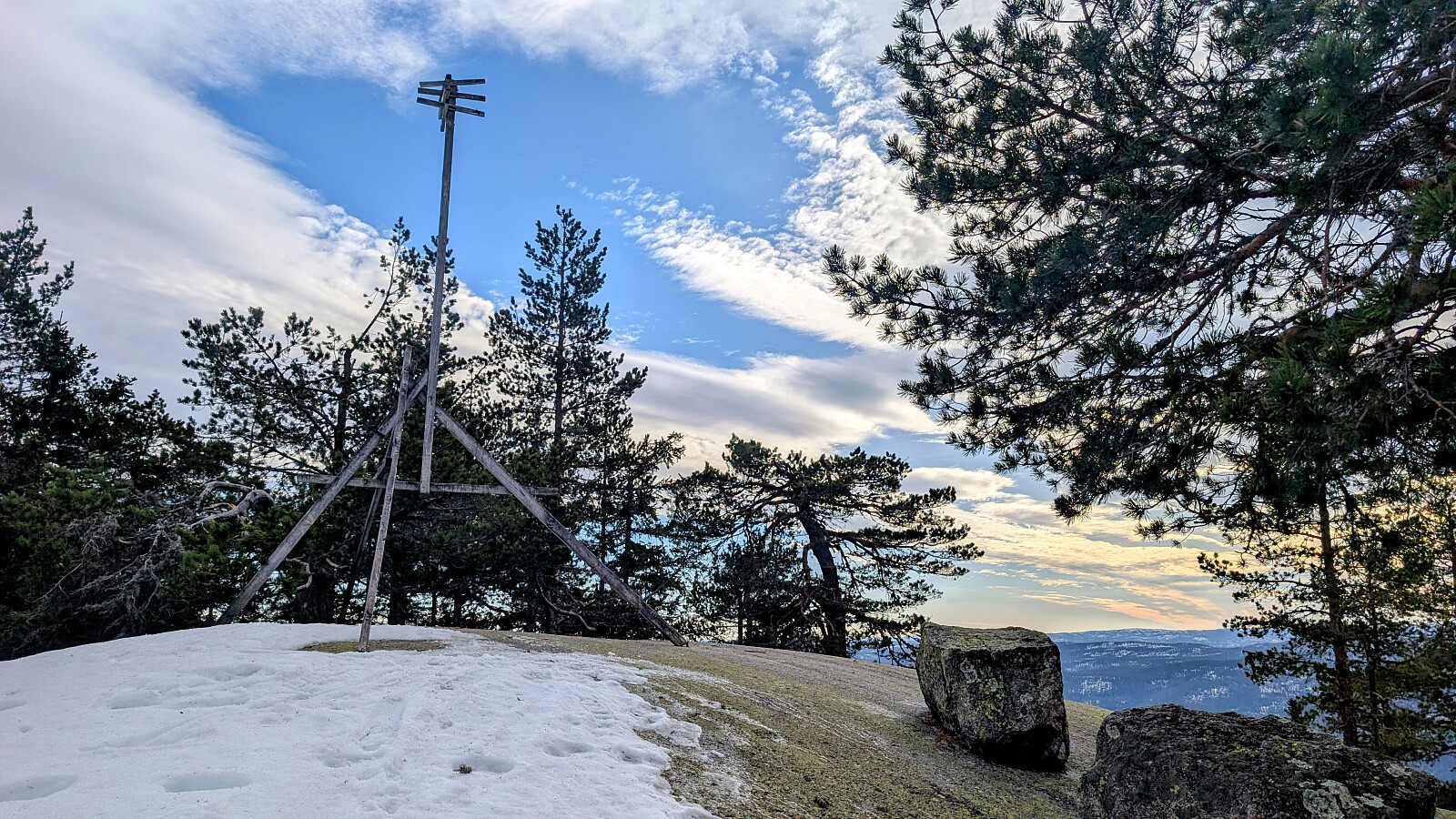 Måtte en tur til Hokksund og Drammen så da ville jeg prøve å komme meg opp på Sirikjerke. Kom ikke helt opp til den vanlige parkeringsplassen så jeg fikk en tur som ble 3km lengre enn jeg hadde regnet med. Greit med truger opp til toppen selv om det stedvis var barmark.