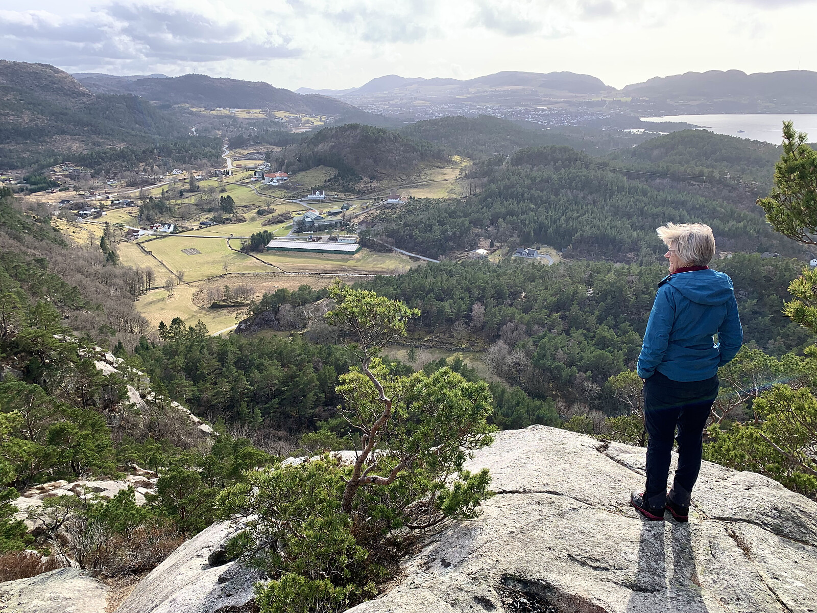Vi kom fra Kattaborga og Kattaborga nord og gikk videre til Høgebjørg på den lille fjellryggen. Flott utsikt. Tilbake gikk vi ned stien til Slåttebakk.