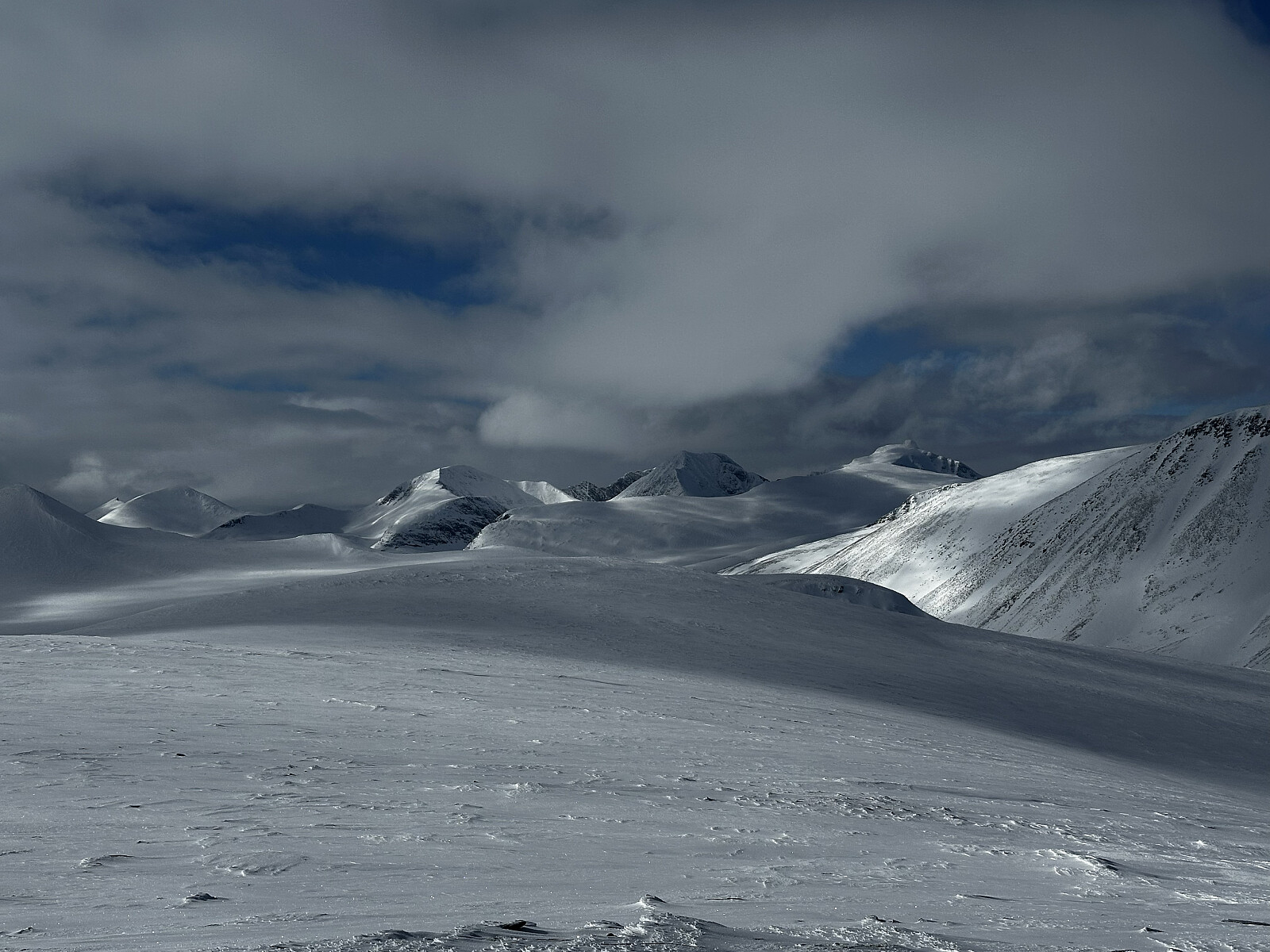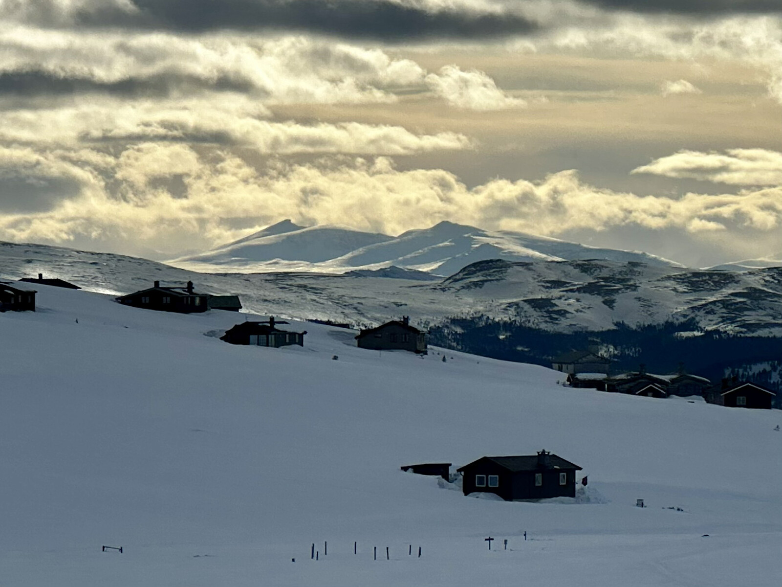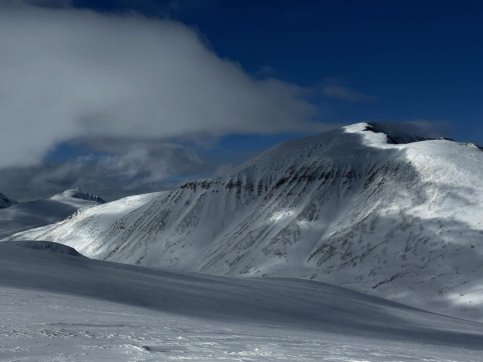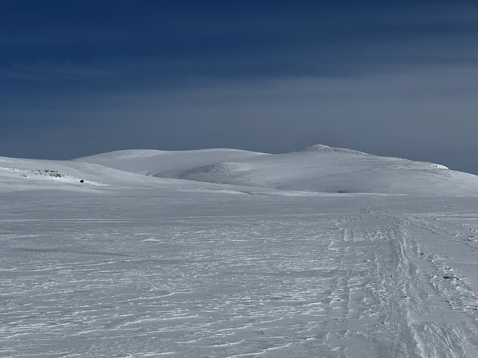 Flott påskedag i fjellet! Opp Tjønnbakken og ut i terrenget på i løypekrysset på toppen der. Ble litt skeptisk da det var litt gjennomslag og derfor ganske tungt å gå. Heldigvis fant jeg et skuterspor og kunne følge det helt til Fremre Gjetarbue. Tok en god pause i solveggen med mat og kaffe der før jeg tok fatt på den drøye turen innover og oppover fjellet. Så ikke noe til villreinen denne gangen, og heller ingen mennesker i mils omkrets. Panoramautsikt fra en litt avblåst topp, men enkelt å gå på ski helt opp til varden. Turen ned ble noe tyngre jeg hadde tenkt. Skiene kunne plutselig bryte igjennom snølaget så jeg måtte ta det forsiktig.