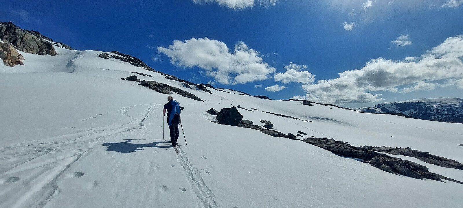 For det første burde kalenderen vise rundt mai månad. Då har ofte snøven smelta eit godt stykke opp slik at ein kan ta seg opp den bratte stigninga til Gardshammerstølen med skia på sekken. Samtidig er det eit tjukt lagt med snø på breen på denne årstida, noko som gjer skituren på breen mest mulig trygg.
