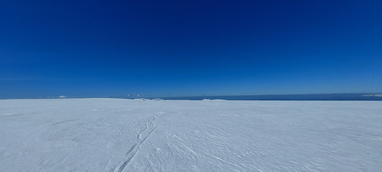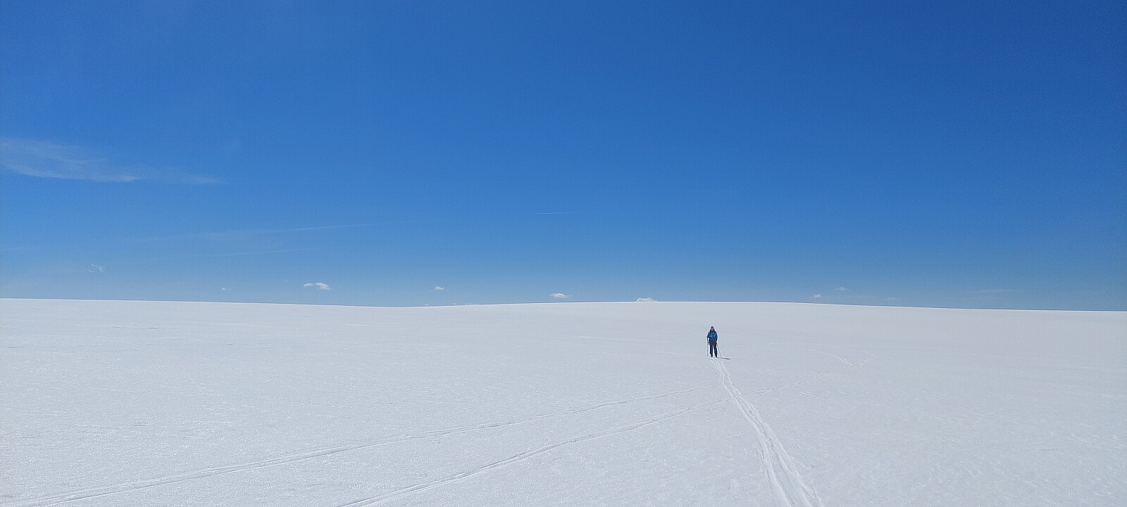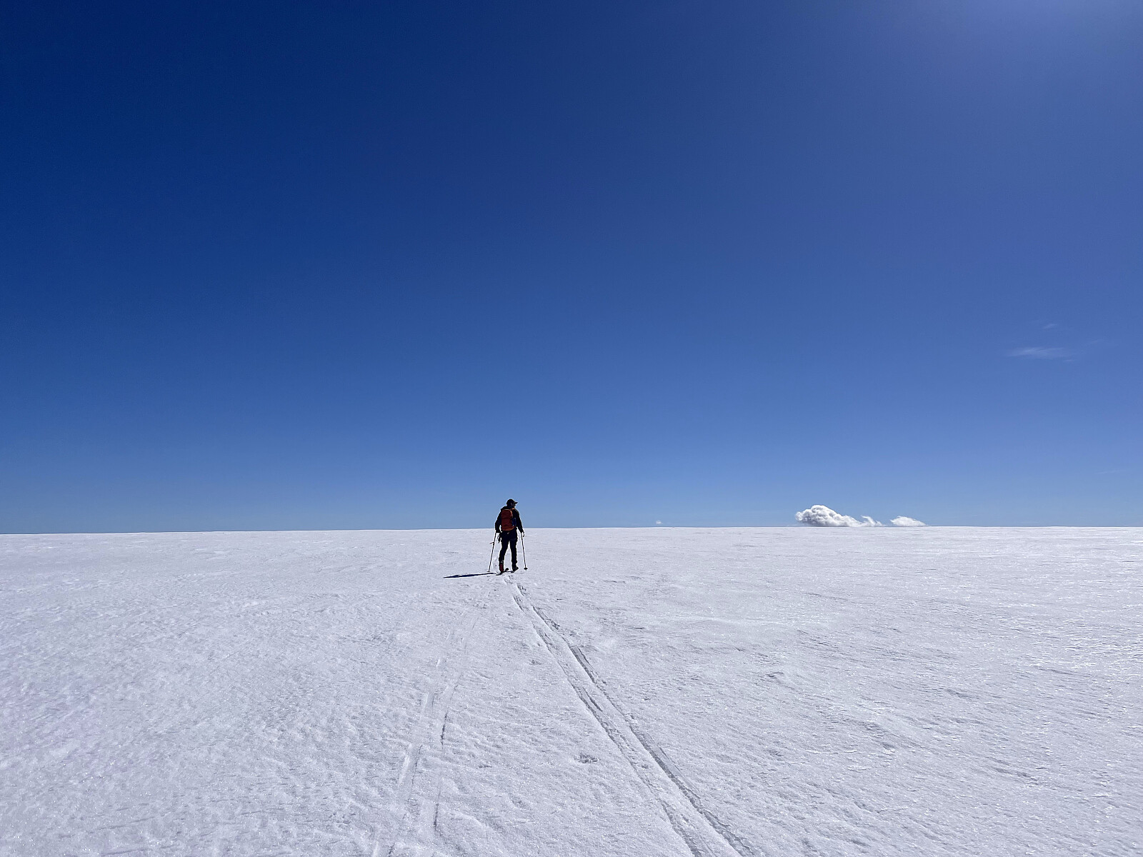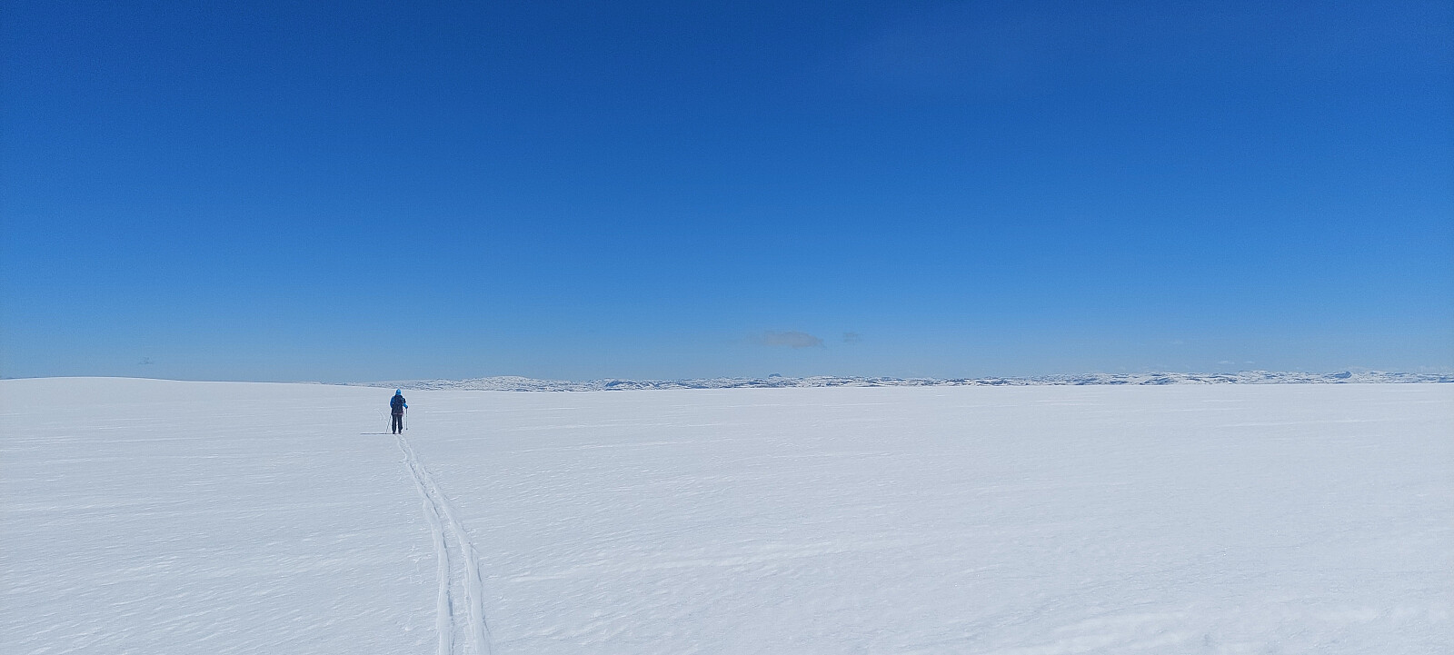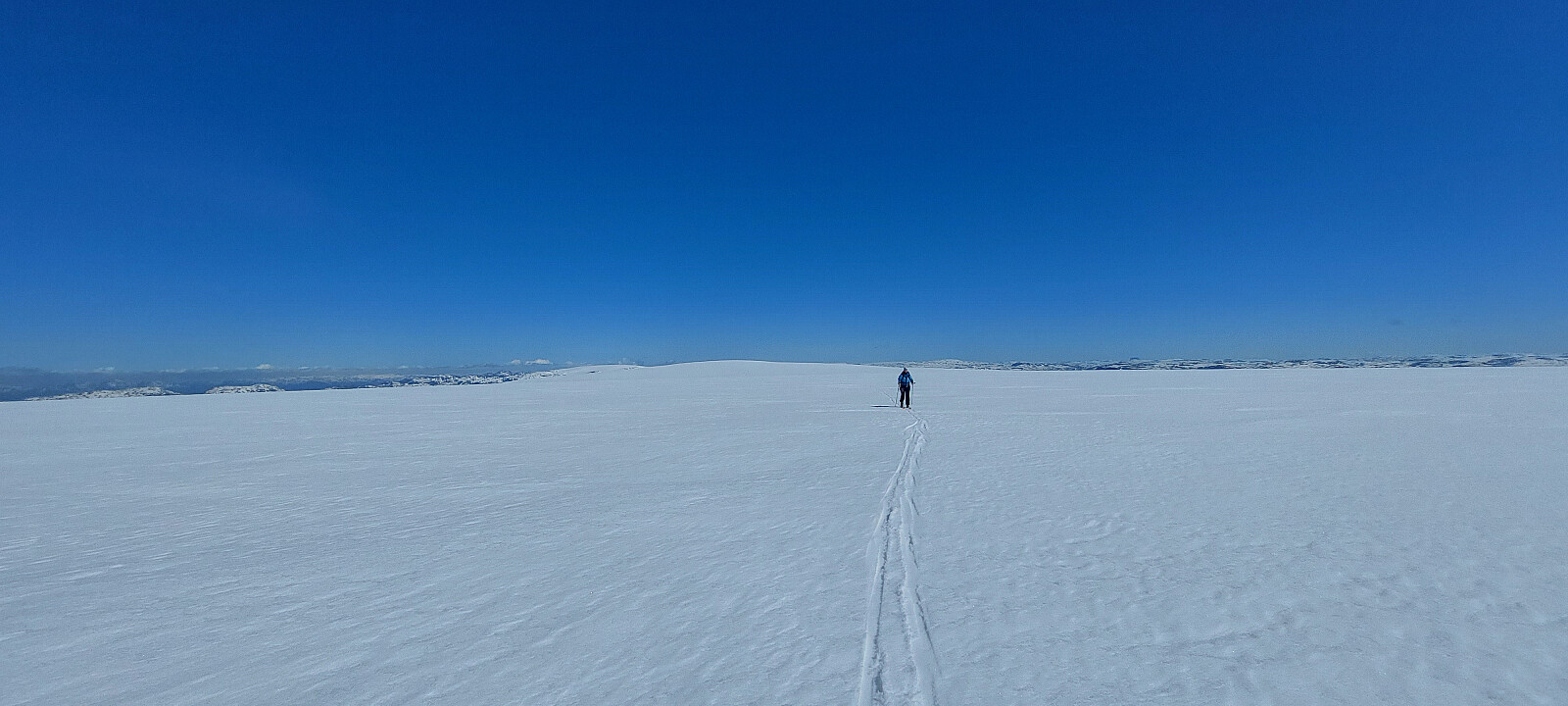 Heilt magisk å lange avgårde i steikande sol her oppe på det langstrakte kvite platået.
