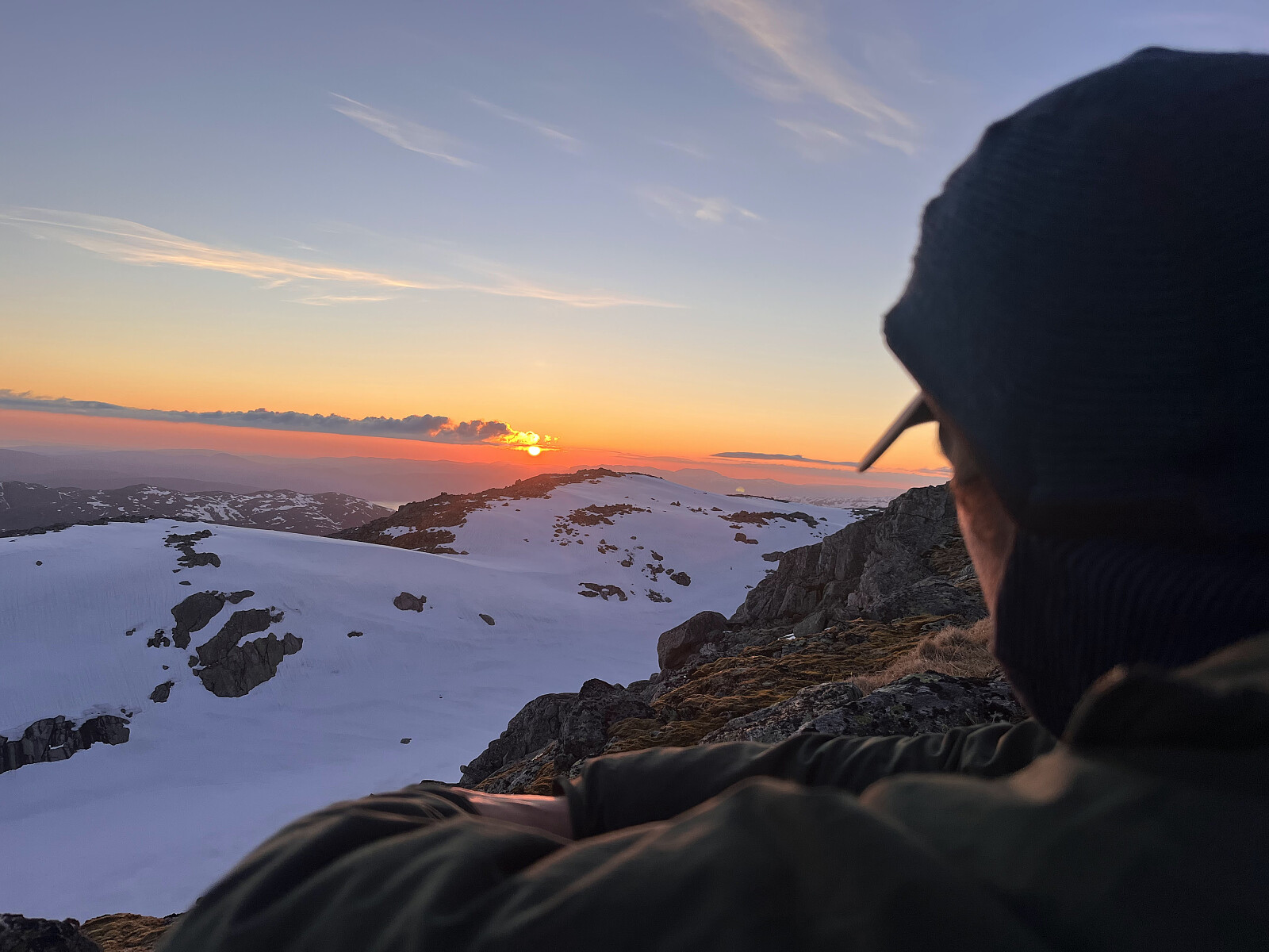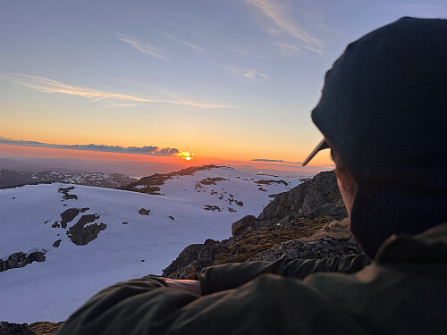Ellers fekk vi med oss ein vakker raudglødande solnedgang. Eg var også så heldig å få med meg soloppgangen når eg var ute å slo lens litt over klokka fem.