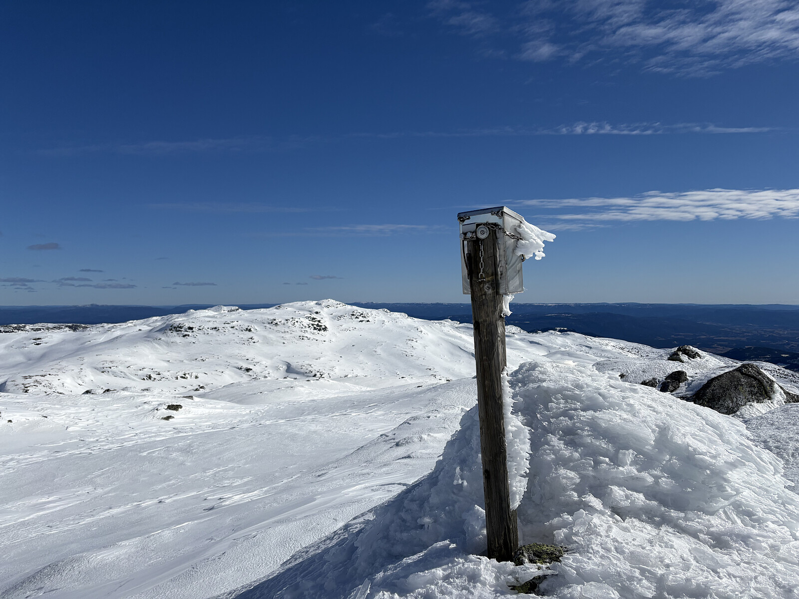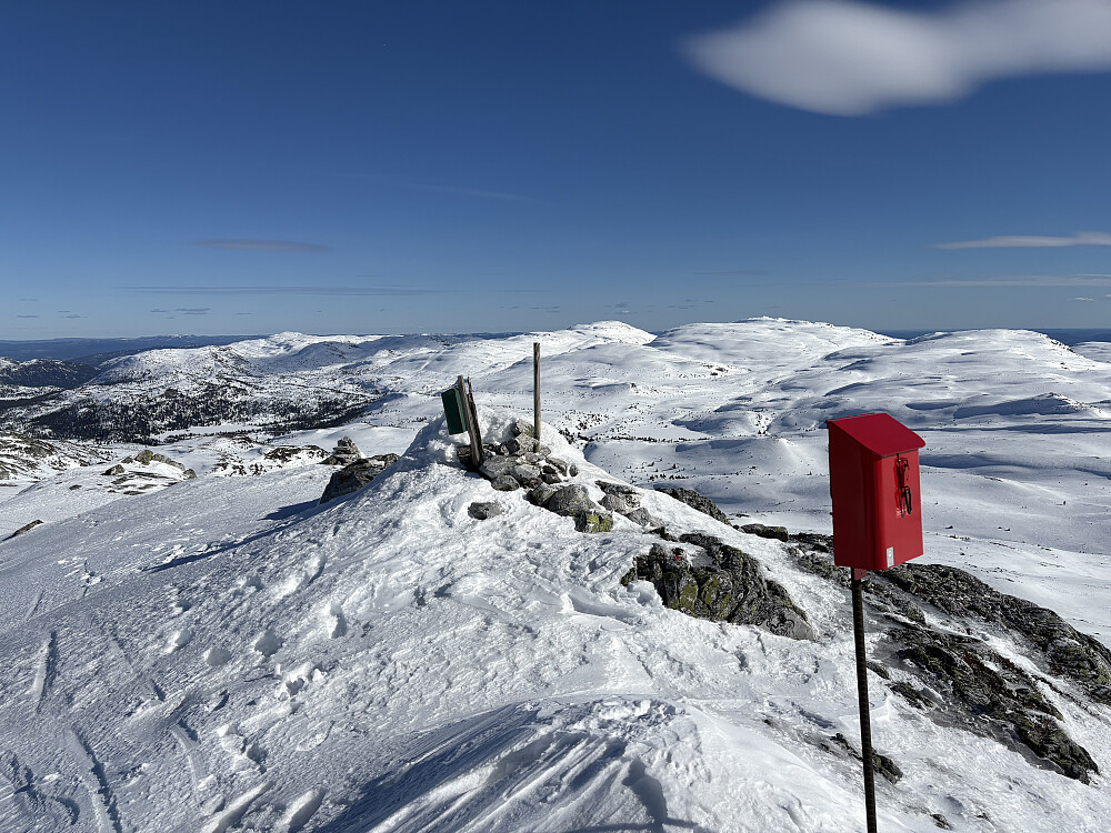 Bomma oppunder selve hatten da jeg dro meg ned og ut mot nordøst. Enklere på nordvestsiden og man slipper å gå ned. Liker postkassen på toppen av den gamle typen.