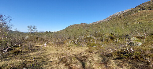 Frå vegen fulgte vi tydelig sti vidare opp Storedalen. Stien vart etterkvart meir utydelig og vi forvilla oss tidvis inn på dyretrakk.