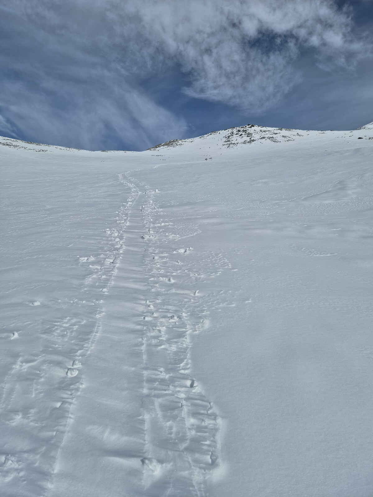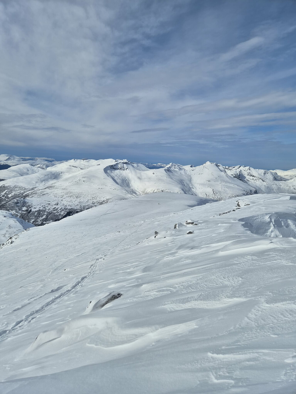 Påskeskitur til Ådalstinden. 5 plussgrader i Seljebotn på det varmeste i dag, men temperaturer på minussiden på fjellet. Noe vind fra 1100moh. og oppover