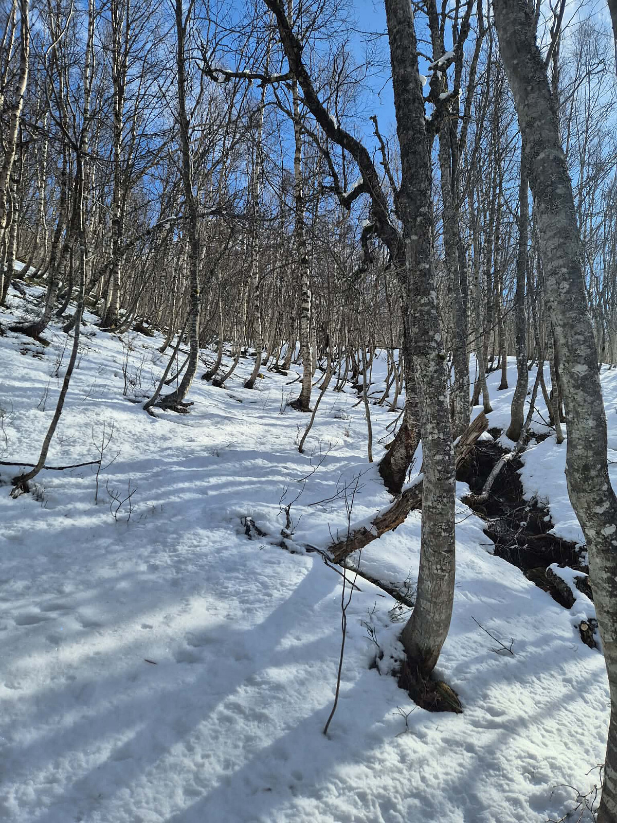 Greit å gå oppover sørryggen på Ådalstinden. Tror imidlertid at det er bedre å gå fra Pusken/Kvitlane v/Overøye siden det er såpass mye skog i starten av denne ruta