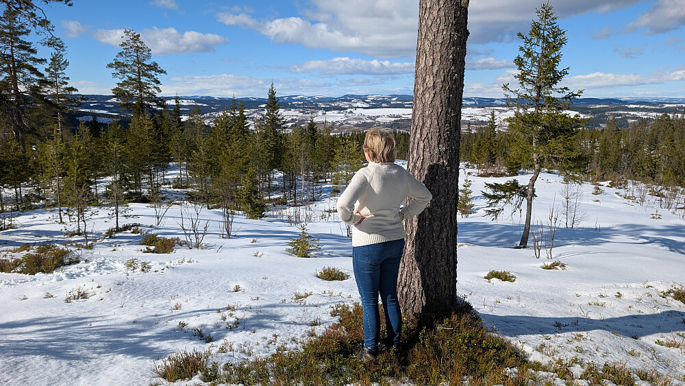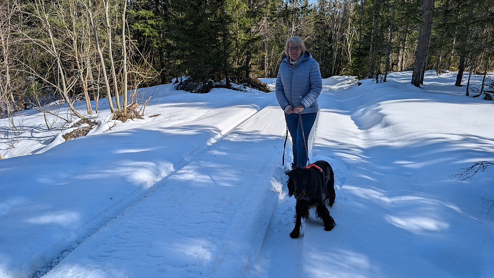 Tur med kona og Embla. Nysnø, mildt og snøen smelter. Mellom 20-25 cm snø i veien opp.