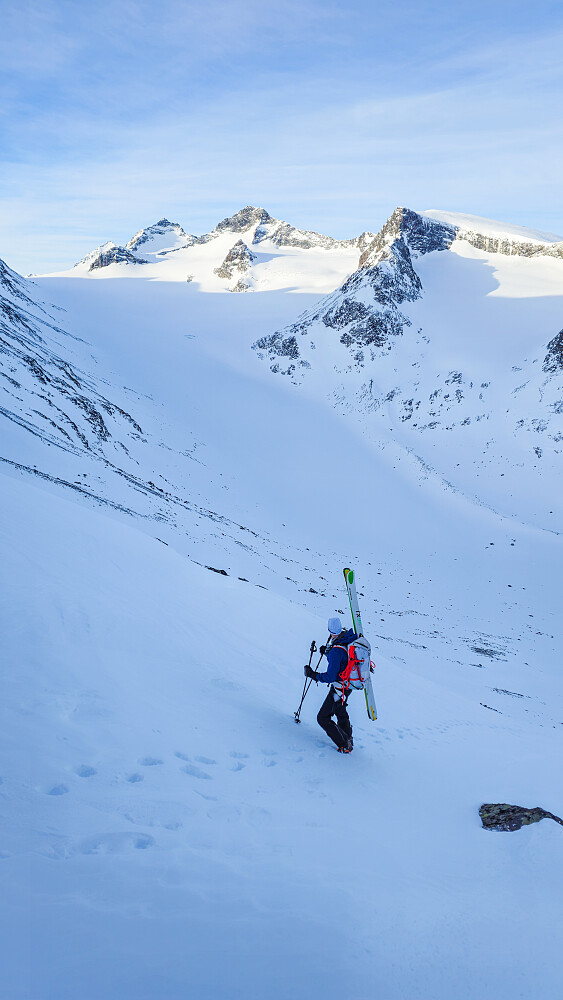 Føringstur over gjest som samler stortopper. Tok med oss Veobreahesten etter ønske om å sprite opp turen litt! De siste dagers vind har virkelig herjet med snøen siden jeg var her i påska, svært lite hyggelig snø til nedkjøring i alle sektorer.