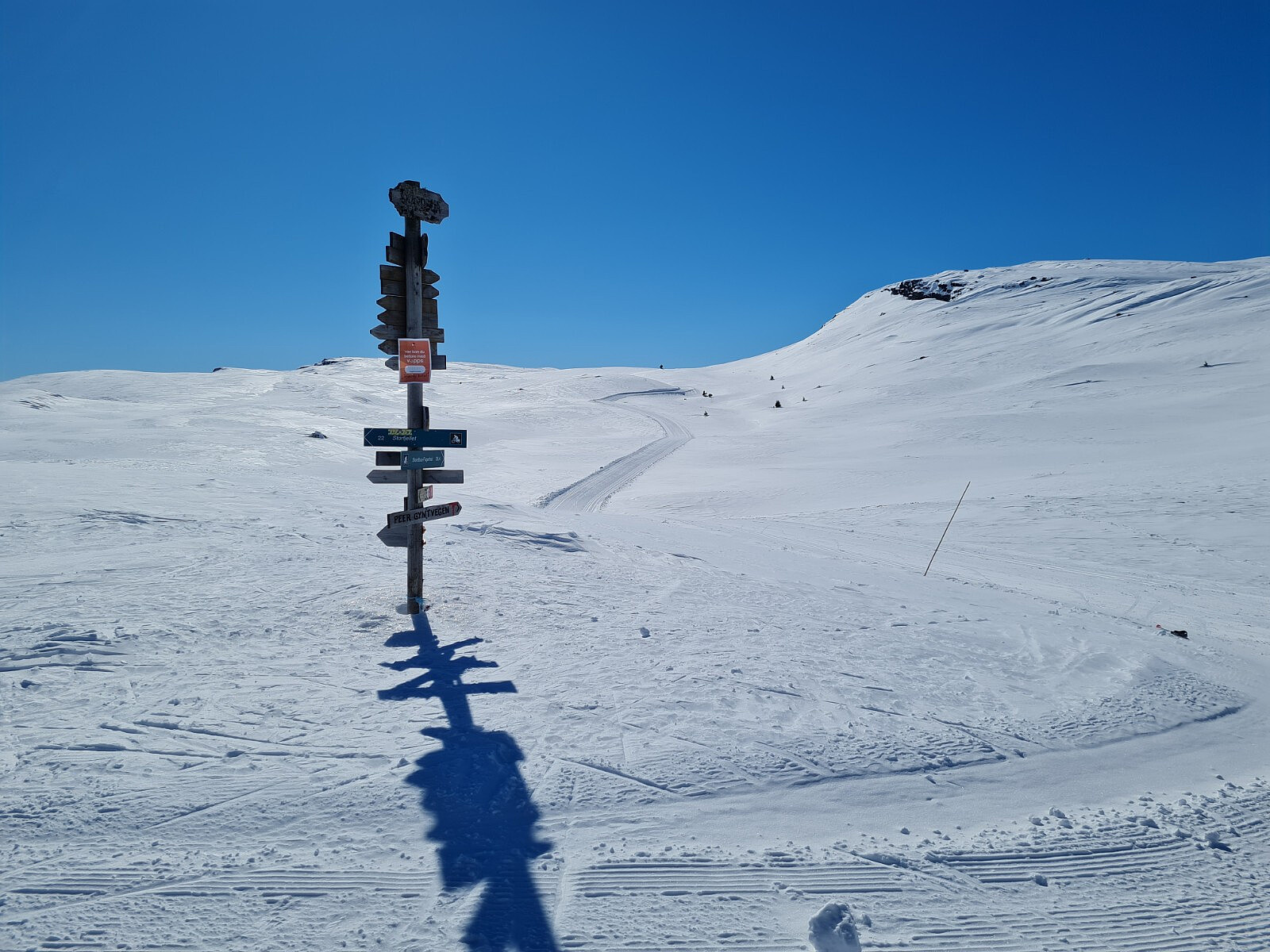 Skitur fra Skei fjellandsby. Gikk inn Torsdalen og opp på Prestkampen. Videre om Skardbua og over Slagsfjellet. Sol fra skyfri himmel, men kuling på toppene, spesielt blå ste det friskt på Slagsfjellet, og tilbake på PeerGyntvelen. Smurte med universalklister i dag, og det fungerte helt topp helt tilregnelig kom til PeerGyntveien, da var mye av klisteret borte, og skiene ble glatte. Har begynt å ploge vel mye!
