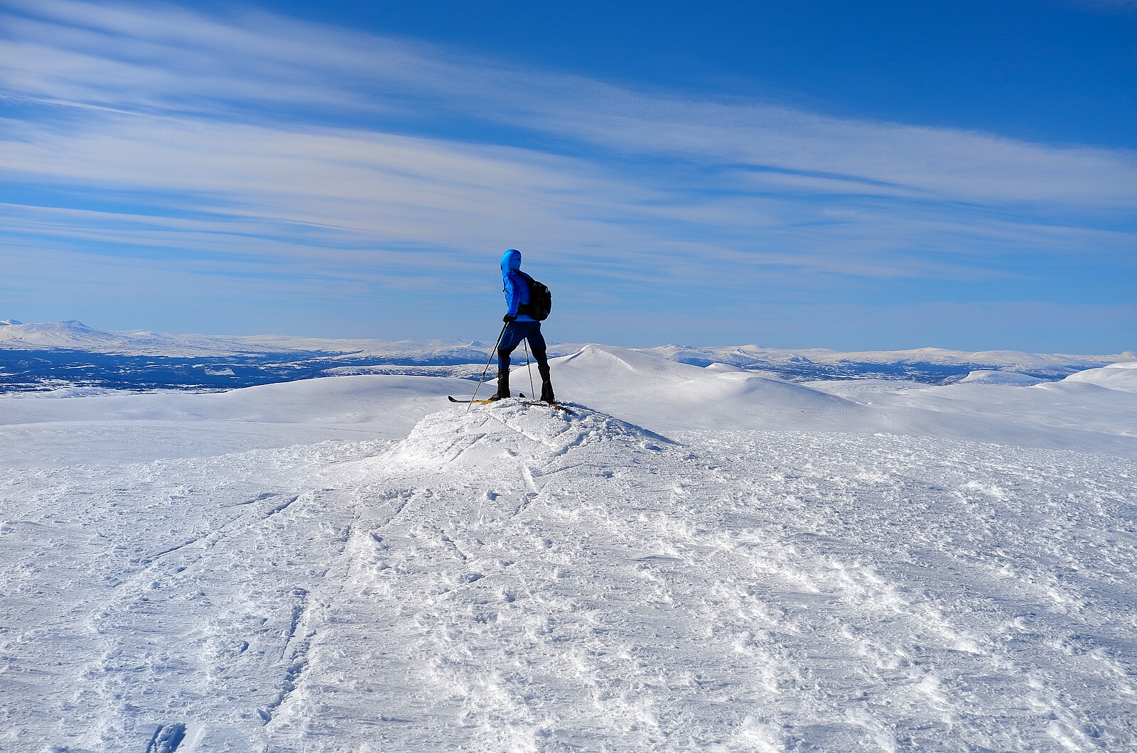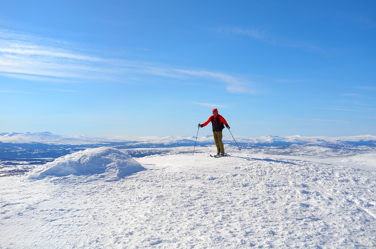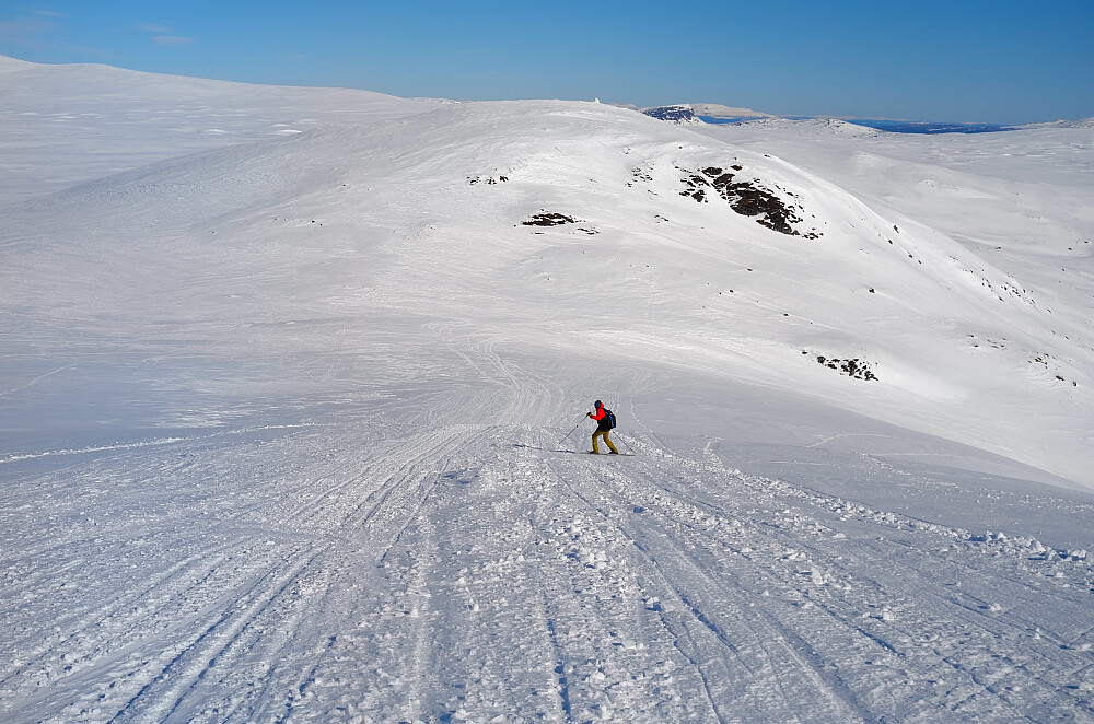 Bortsett fra vinden som var ganske irriterende ble dette en innholdsrik tur i nasjonalparken. På strekningen mellom Penningkeisa og Oivisfjellet kom vi tett innpå en svensk jerv (eller kanskje norsk). Den forsvant med lynets hastighet og vipps så var jerven borte. Deretter en matpause ved den vesle gjeterbua til samene. Vinden økte så det var temmelig forblåst på Oivisfjellet og Strifjellet. Vi så for oss en lang og fin nedkjøring fra siste fjell, men motvinden bremset farten så det ble ikke det vi så for oss. Uansett en fin rundtur i villmarka. Ekstra hyggelig at Terje Strømhylden (TERJE) stakk innom oss på Ytterdalstunset hvor det ble servert viltgryte, tyttebær ris..