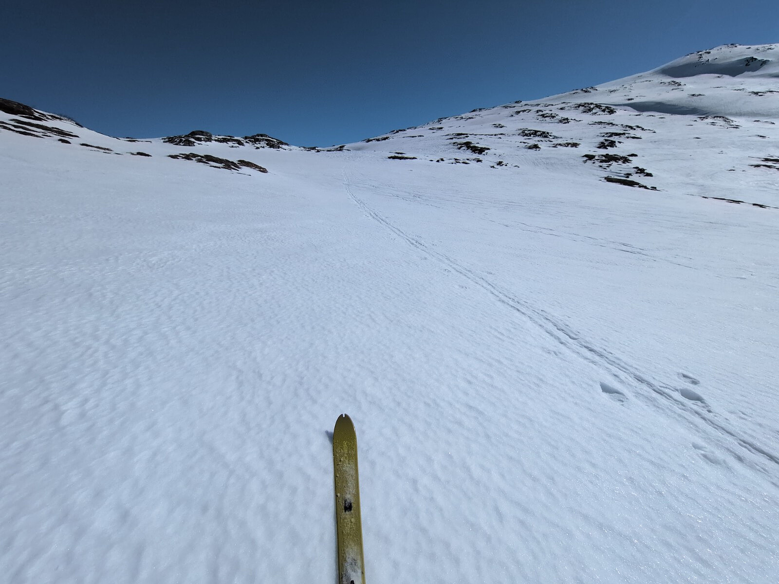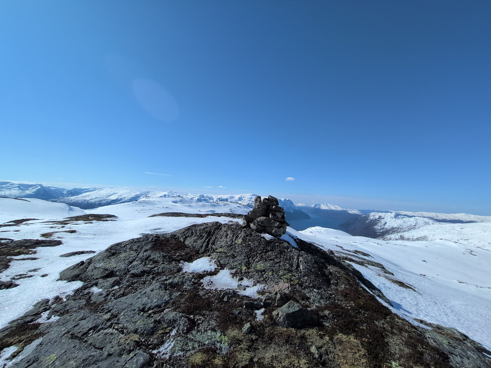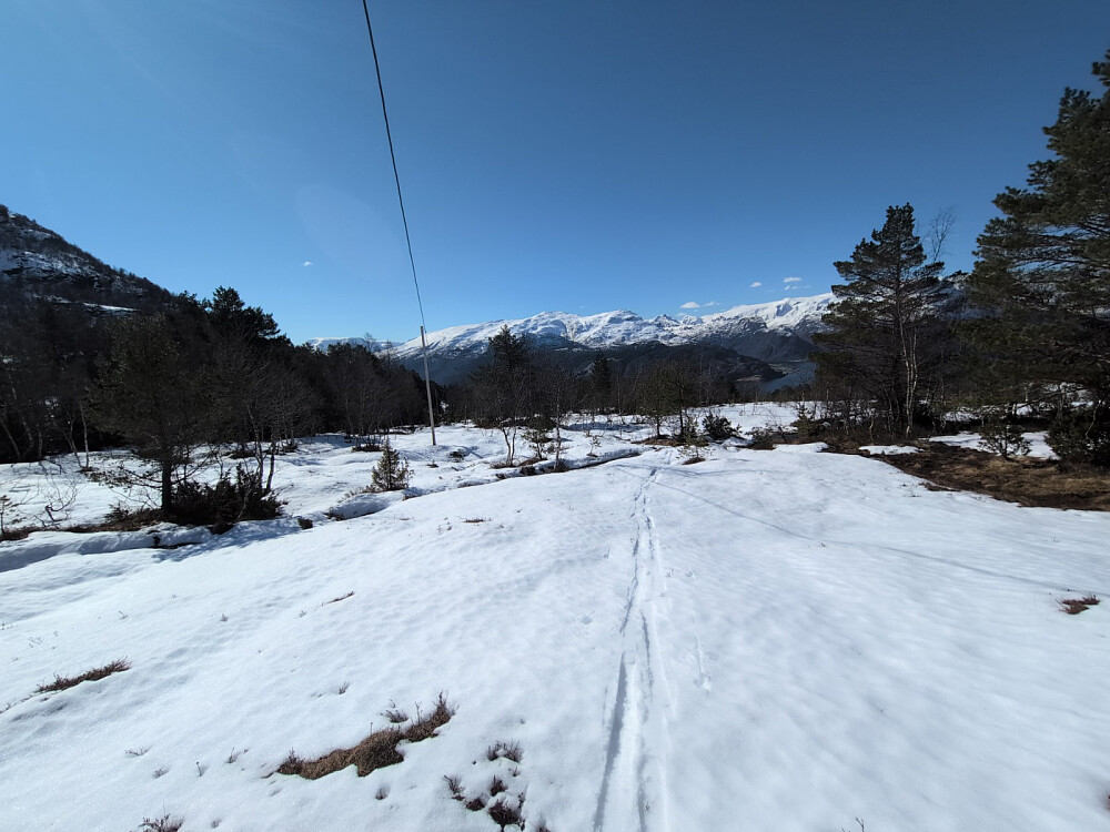 Flott vær, endel vind i høgda. Prøvde randonéeskia til Vinjar for første gang. Skoa han har vokst ut av, men de passa meg overraskende bra. Utstyret var som forventet utrolig lett å gå med, omtrent som fjellski.