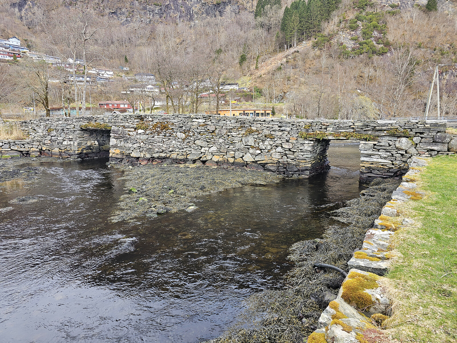 Prestebrua. Steinbrua over Mjeldastraumen i Haus