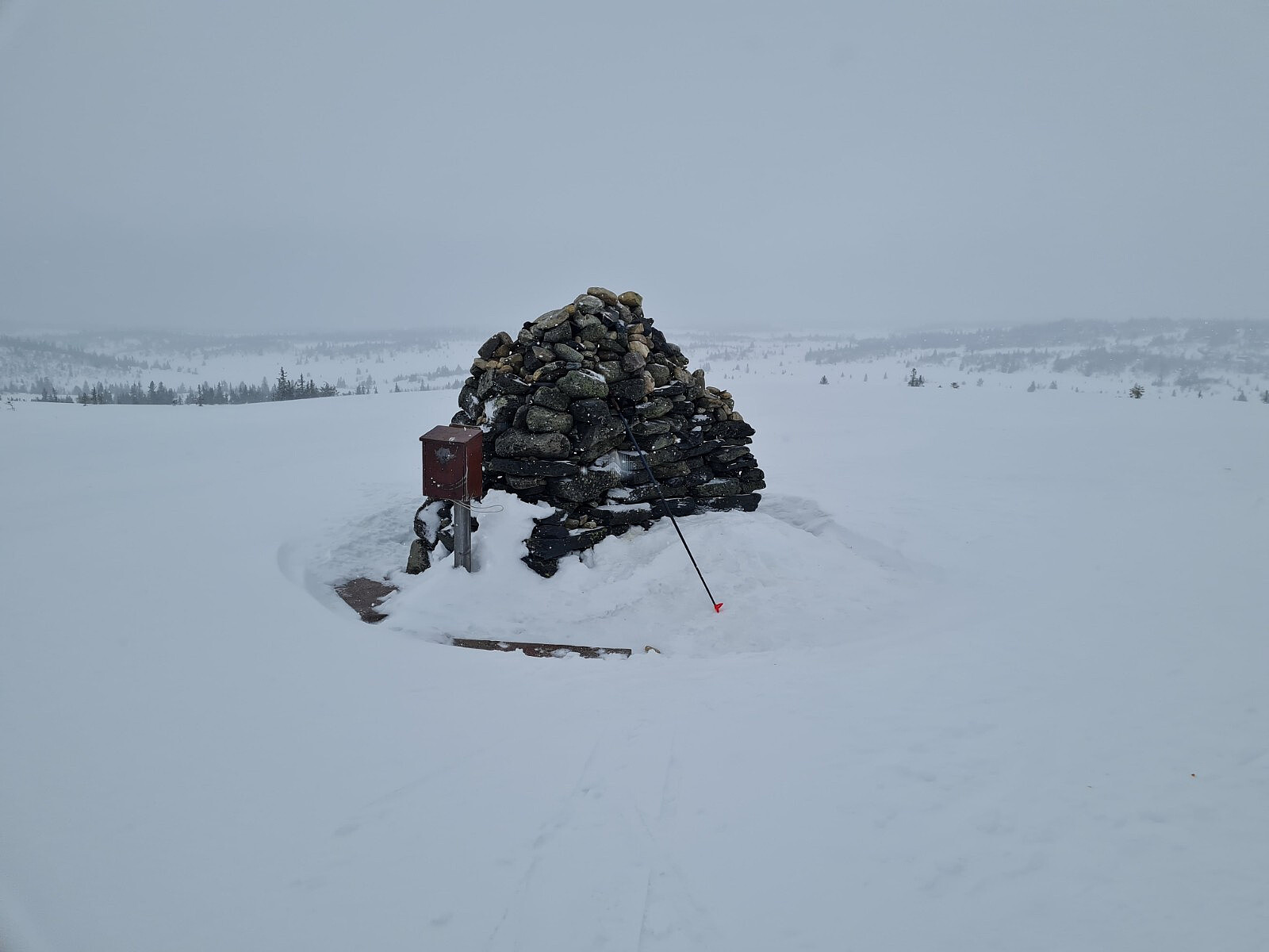 Ny skitur fra Astridbekken i dag. Oppholdsvær da jeg startet, men før jeg kom opp bakken fra Astridbekken begynte det å snø. Gikk strake veien til Gammelhans, som ble første toppunkt. Ganske så surt å ufyselig på Skjelbreidsfjellet, sterk vind og tett snødrev. Kom et et par-tre cm snø mens jeg var på tur, var litt bekymret for at universalklisteret skulle begynne å ise, men bortsett fra på Nysetervegen på vei mot Hærfjellet gikk det helt fint, men her her måtte jeg skrape vekk is noen ganger, men gliden ble dårlig etter hvert. Zero-ski som jeg og hadde i bilen hadde nok vært et bedre alternativ i dag. Så ikke en eneste skiløper i dag, men det hadde gått et par før meg på Nysetervegen.