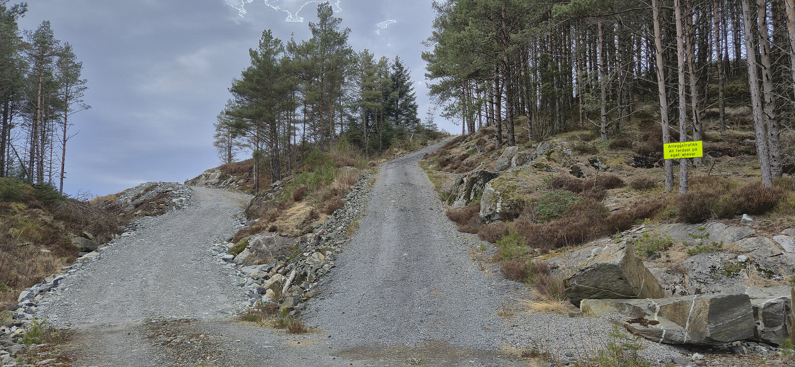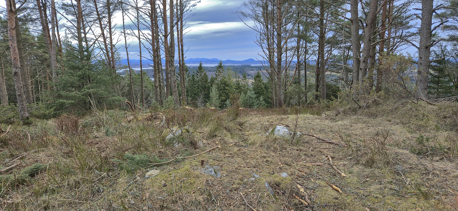 Short bonus hike after my trip to Brattelifjellet, Storeholten and Mosedotten in Gulen and the ferry ride from Sløvågen given that I had around an hour to kill at Leirvågen before the bus back to Bergen. The goal was to visit the highest point in Austrheim, namely Litlåsfjellet. This was easily achieved as there was a gravel road pretty much all the way to the summit. There were even tire marks across the highest point as a result of recent logging activity.