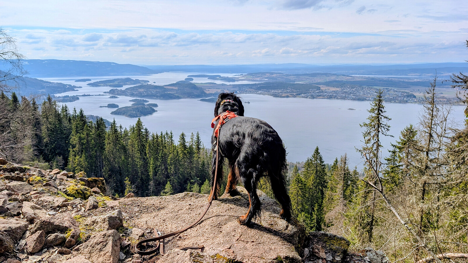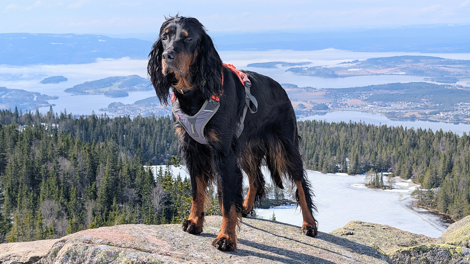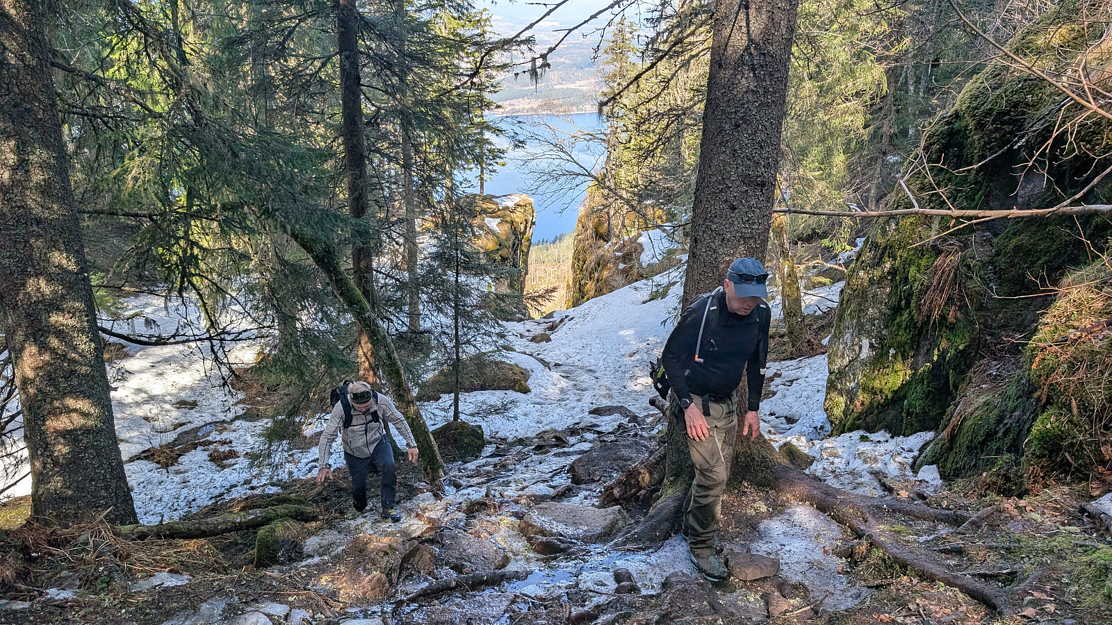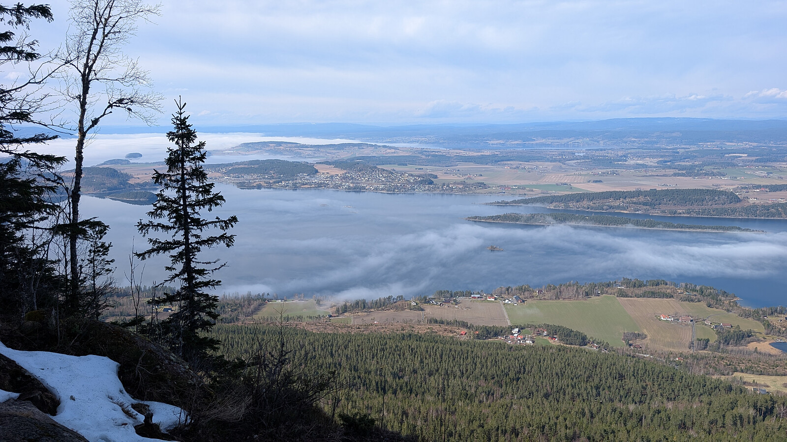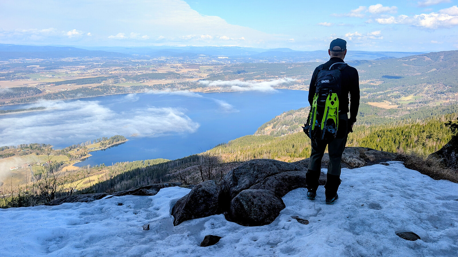 Øverst i skaret var det greit videre, men truger måtte på et godt stykke. Tok på de etter vannet. Noe før toppen var det barmark. Herlig utsikt på toppen og varmt i sola. Gikk greit ned mot vannet igjen og tok truger. Valgte nok en feil sti videre som gjorde turen litt lengre. Måtte bruke truger et godt stykke før vi kom ned mot Skardtjernet. Derfra greit traseen nedover med stedvis flott utsikt over Tyrifjorden.