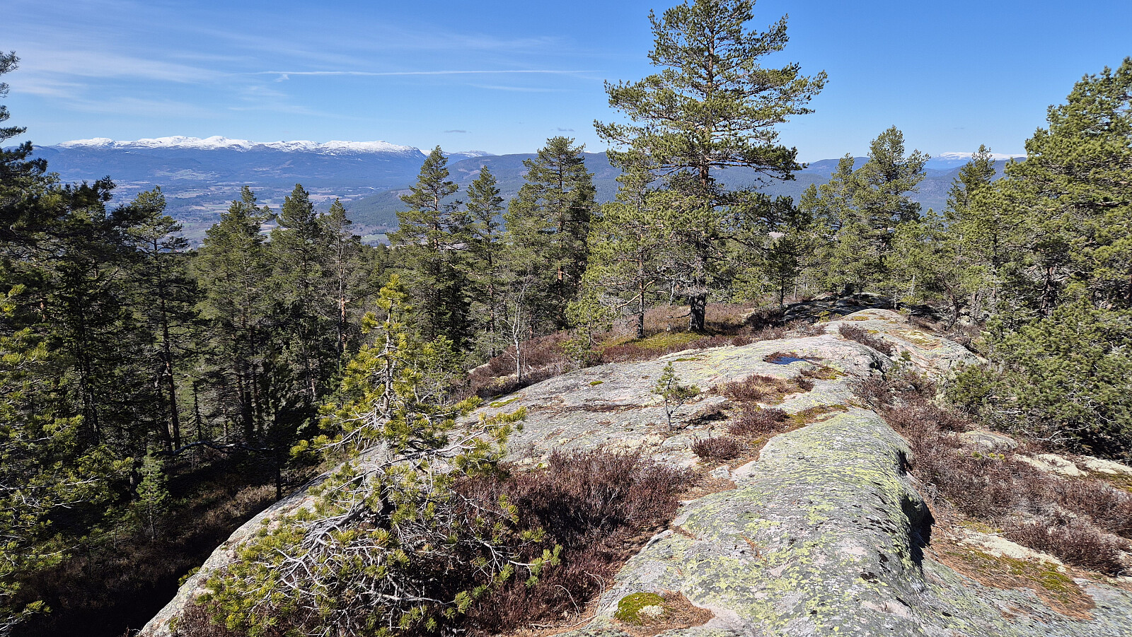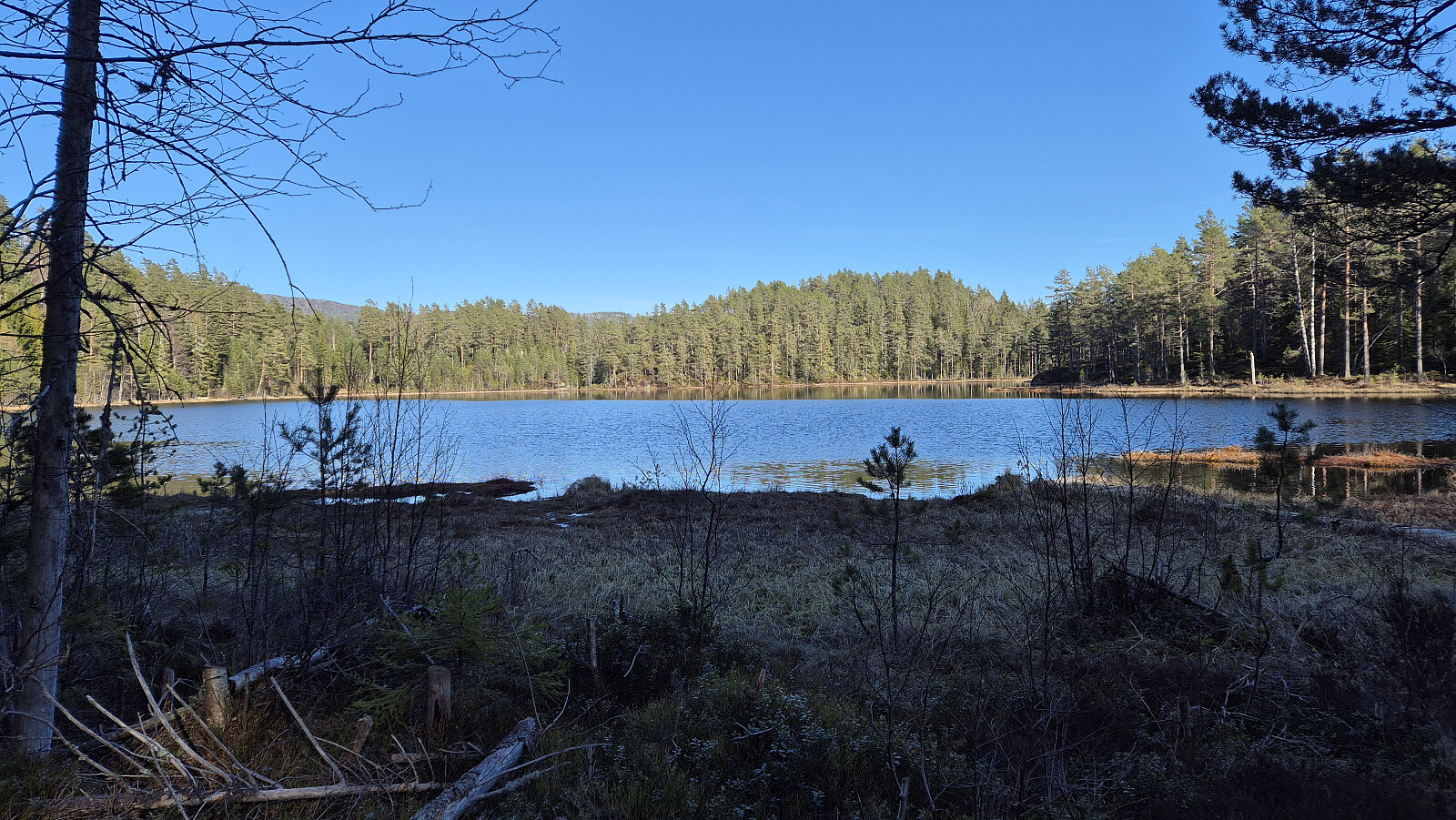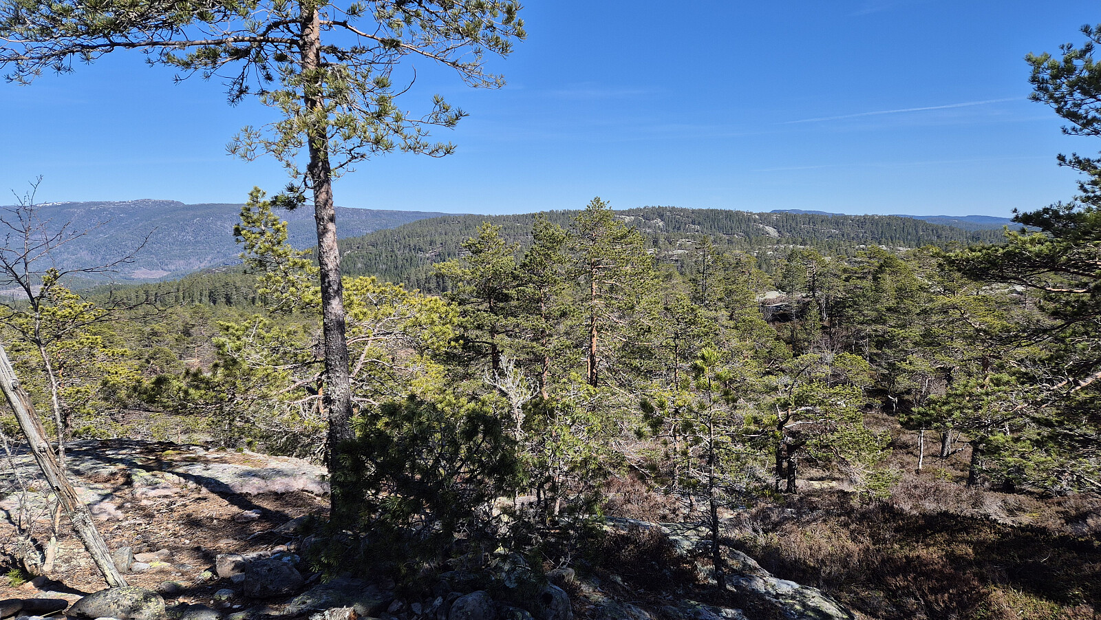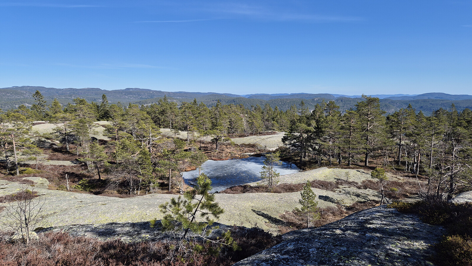 Fint å vandre nordover fra Vardefjell (587) til Vardefjell Nord. Slakt og ganske lettgått, med åpen skog og et par tjern.