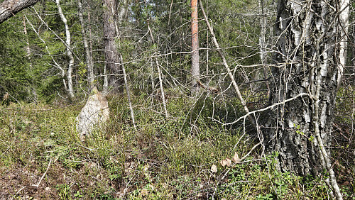 Ingen utsikt her. Men det er relativt åpent akkurat her på høydedraget, og man aner landskapet i syd og vest.