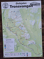 Gikk fra parkeringsplassen ved Tronfjellveien og fulgte Tronfjellveien opp på Flattron og krysset over til Fredsstøtta og garasjeanlegget på Flattron. Hadde en halvtimes koselig rast ved Fredsstøtta. Gikk rett nedover mot Tronsvangen men gikk litt feil slik at jeg måtte gå noe oppover igjen(havnet på et stup ned mot Tronsådalen) Tåka som hadde ligget tykk ned i bygda kom etterhvert oppover så siste del av turen gikk jeg i tåke. Fint at det er sti å gå etter når tåka ligger tykk.