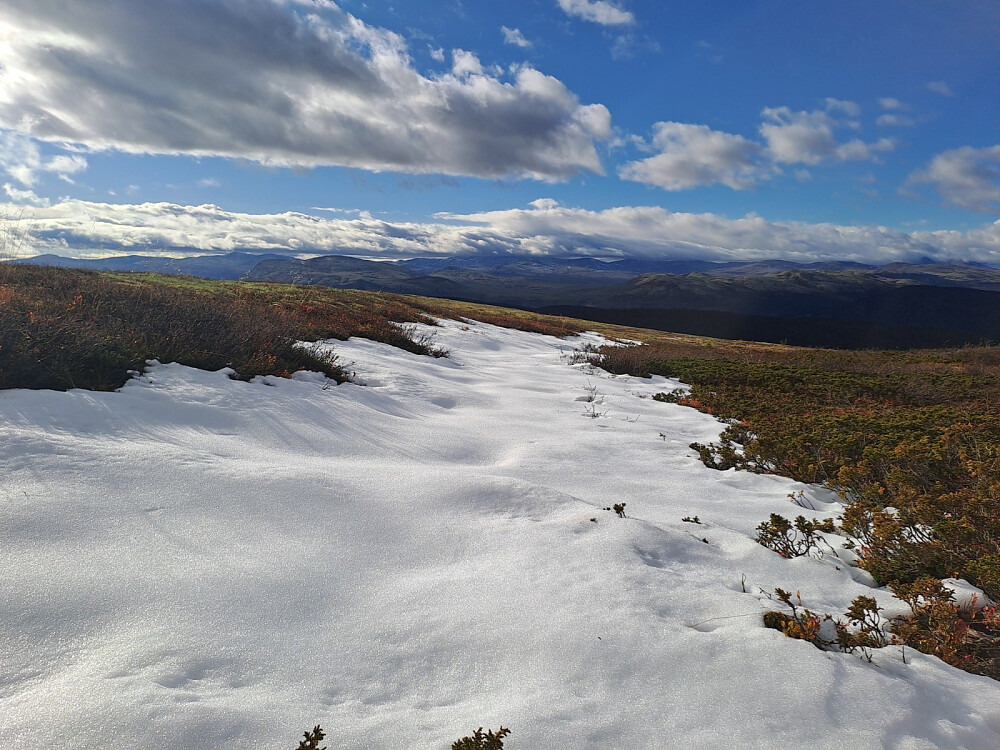 En av de hyggligste turer på lenge. Selv om jeg går alene så går det fint å dele turopplevelser med bilder.Høst i fjellet nå, men noen trær er fortsatt standhaftig og holder på løvverket.