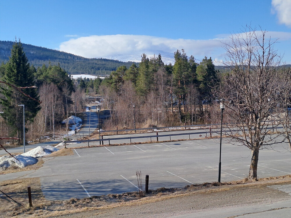 Da formen fortsatt ikke er som den var så må jeg nøye meg med å gå en tur på "byen" og kjøpe brød. Ser med lengsel mot Tronfjell.