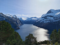 Etter turen til Heimdalshøye fortsatte ferden mot Sunnmøre. Det ble overnatting på parkeringsplassen/utsiktspunktet på Ljøen, med lovende prognoser for været neste dag.