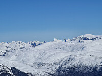 Siste stykket mot toppen begynte et virkelig å tette seg til med folk, og det var reine påsketreffet på toppen. Ikke rart med tanke på været, og utsikten mot Gjendealpene og resten av Øst-Jotunheimen >>>