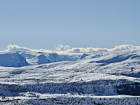 I dag igjen var vi først ute på tur - Bortsatt fra noen virkelige morgenfugler som allerede var ferdigkjørte til kl. 09:30. Selv om det var -15, føltes deg godt og varmt med vindstille og solsteik. Det gikk relativt radig opp til toppen, og vi fikk voldsomt med publikum til nedkjøringa. Verdt å nevne den fantastiske utsikten til Hurrungane som stakk opp av et tåkehav i nord.
